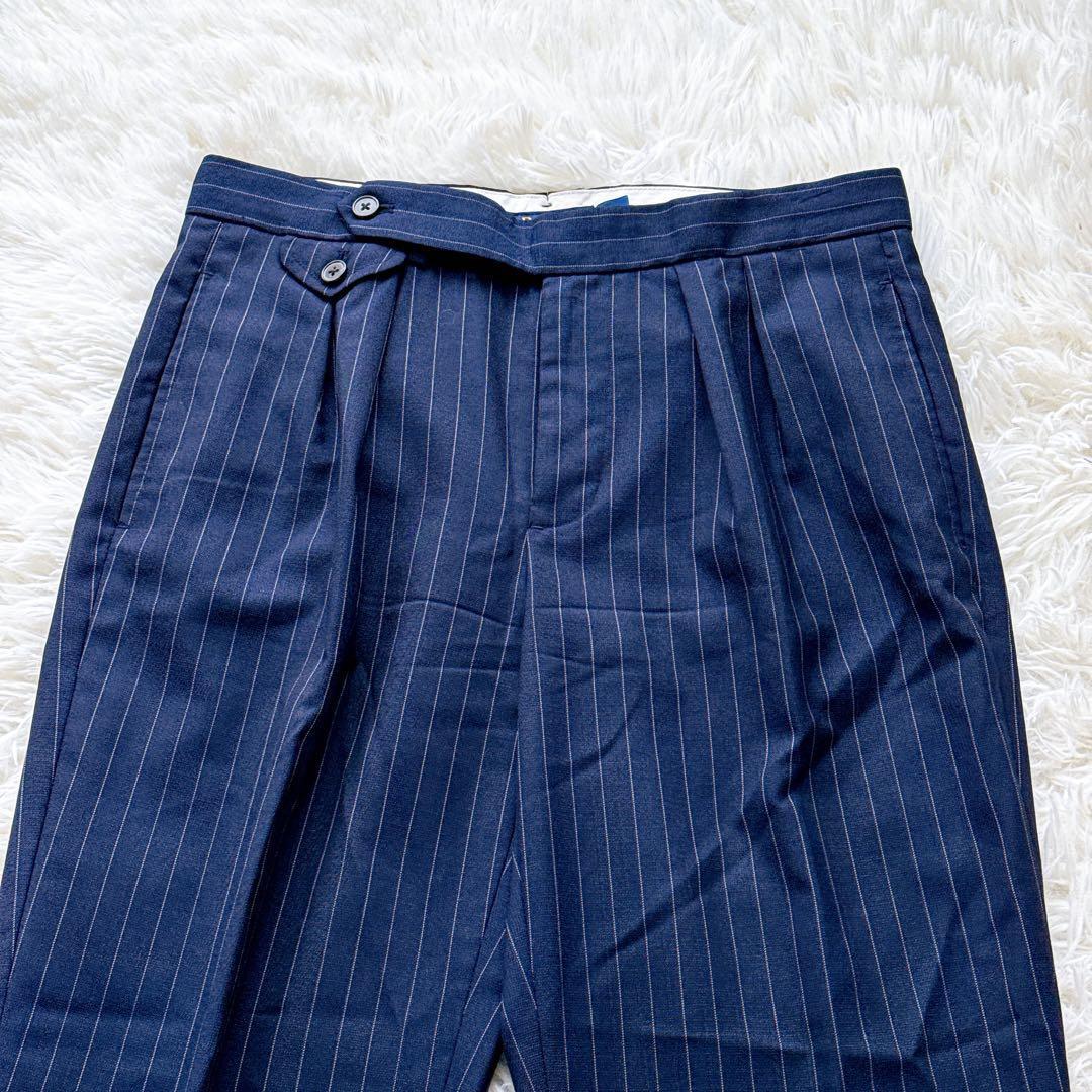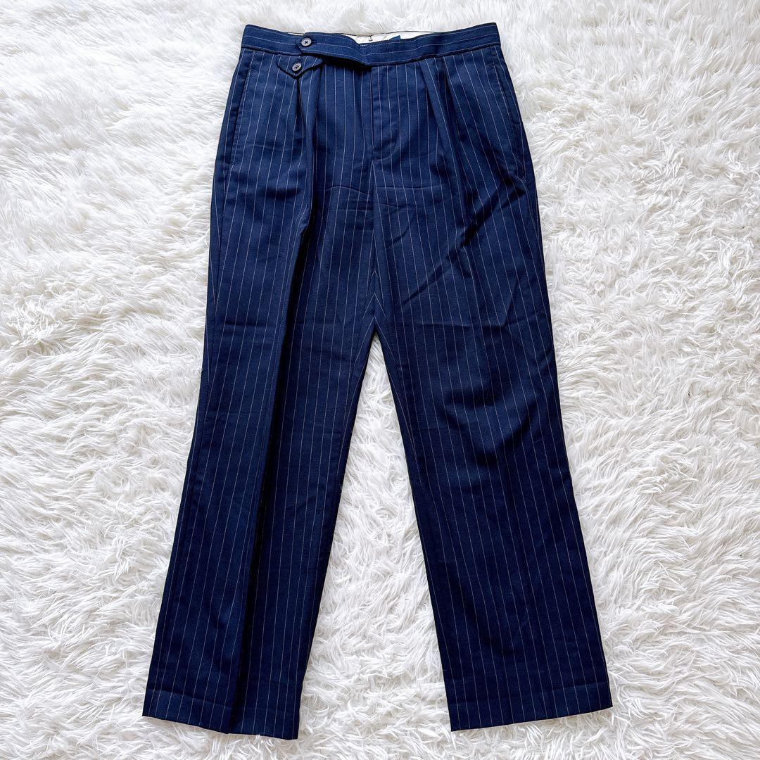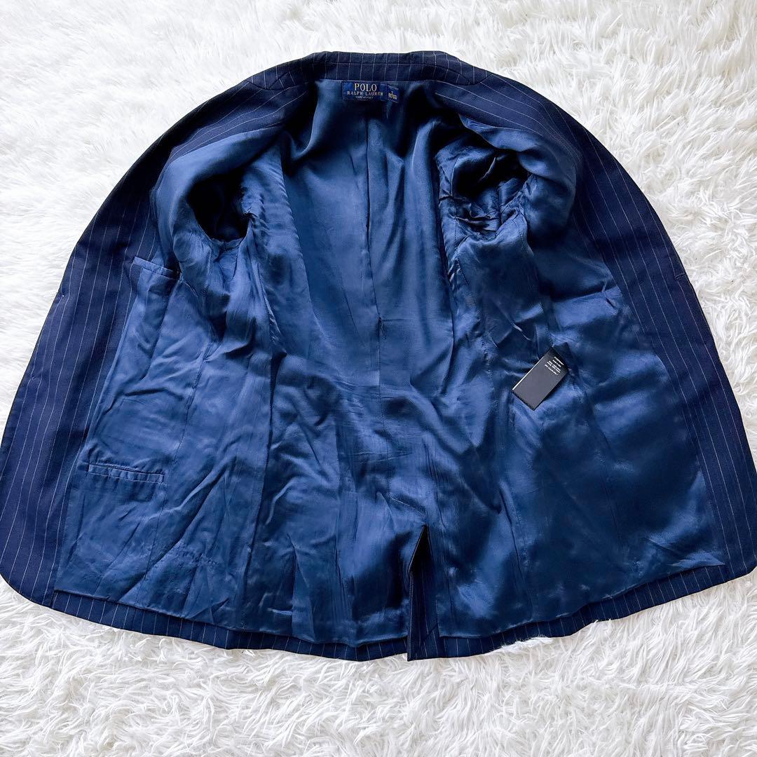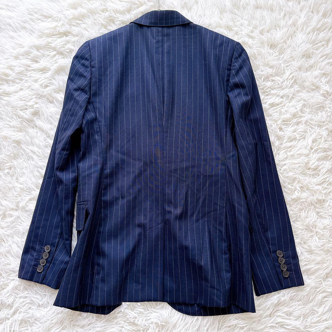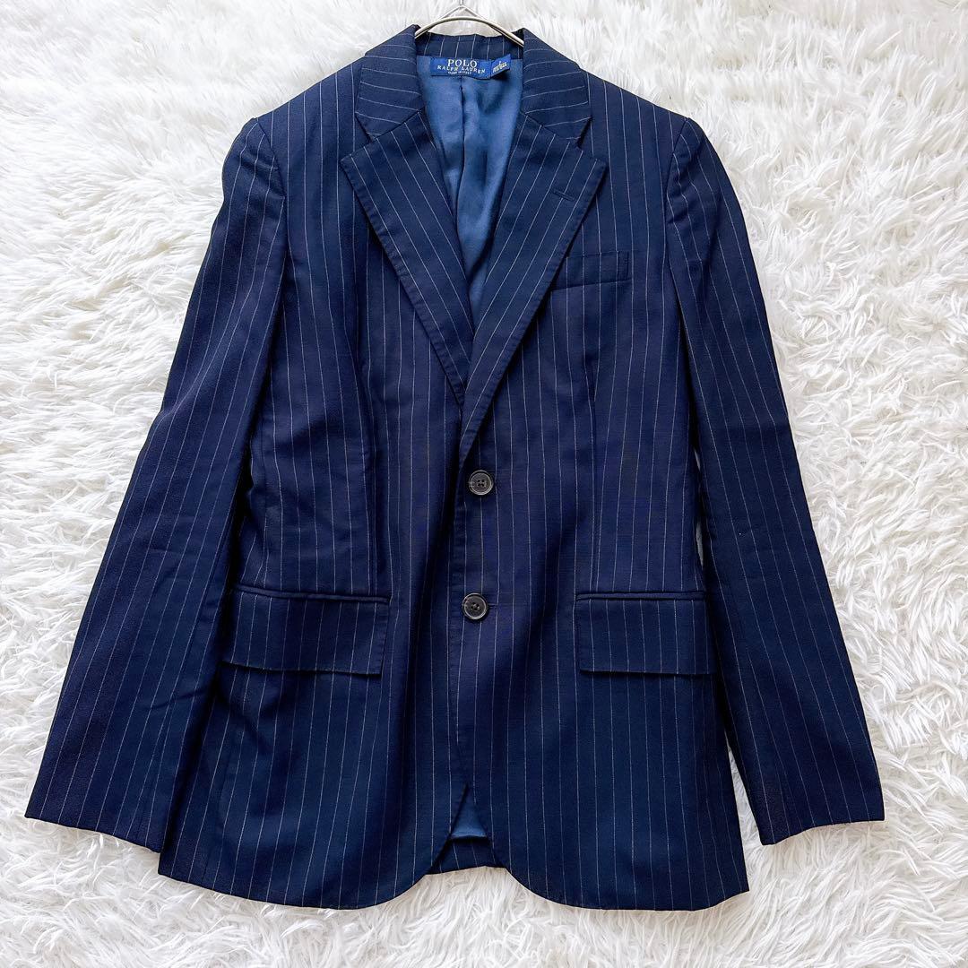 POLO RALPH LAUREN ポロ ラルフローレン レディース スーツ セットアップ ジャケット パンツ ストライプ ネイビー 紺系 2サイズ 小さめ ビジネス オフィス 面接 通勤 フォーマル 上品 高級スーツ ウール 美シルエット センターベント 秋冬 現行モデル 美品 正規品