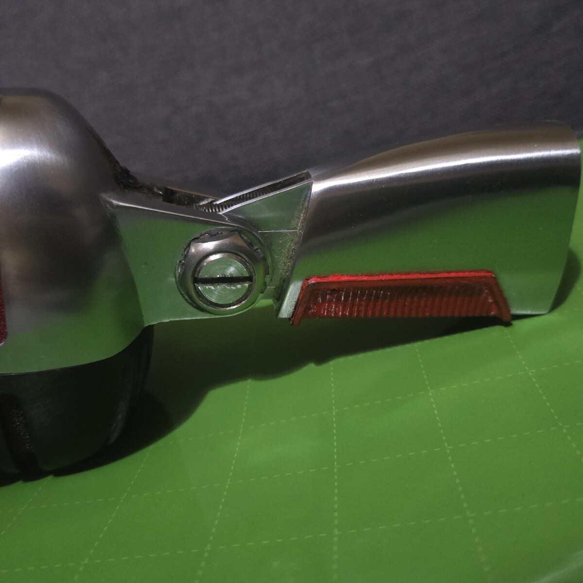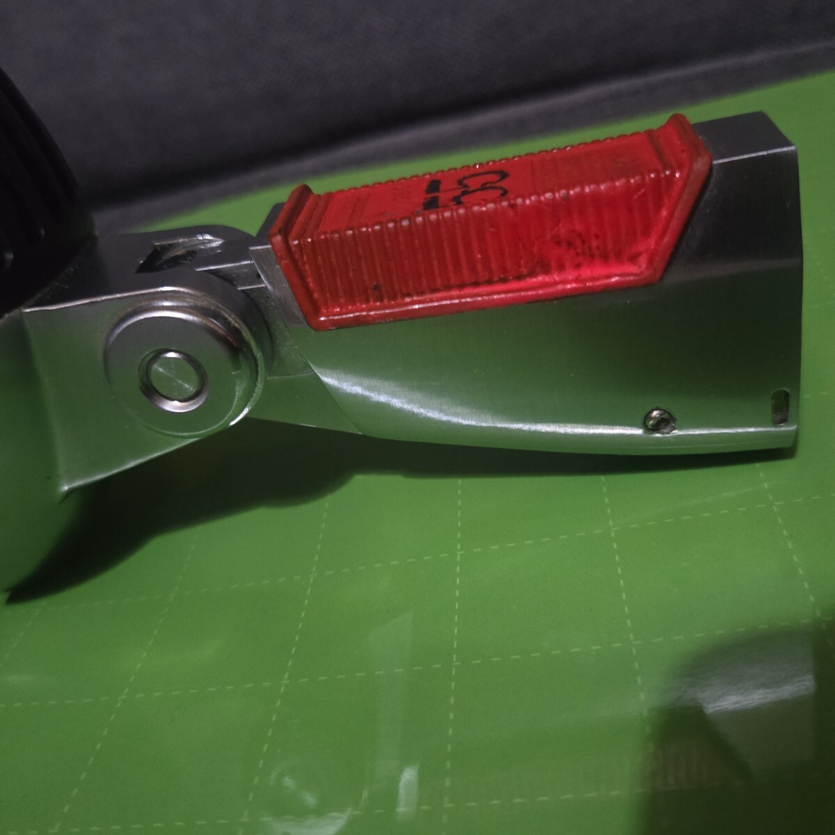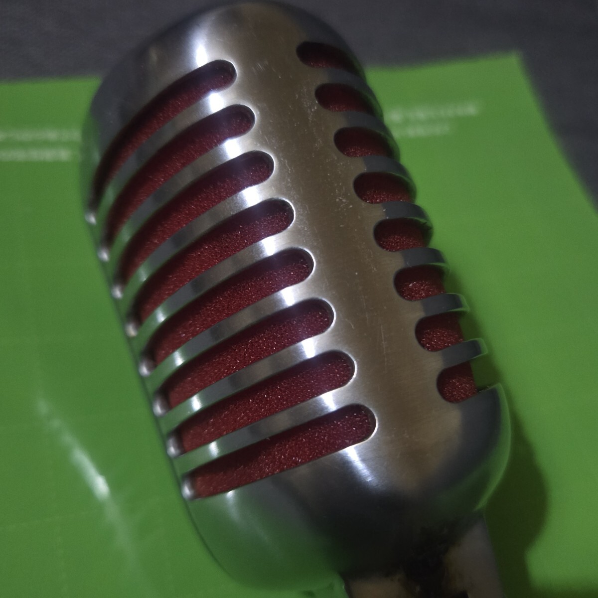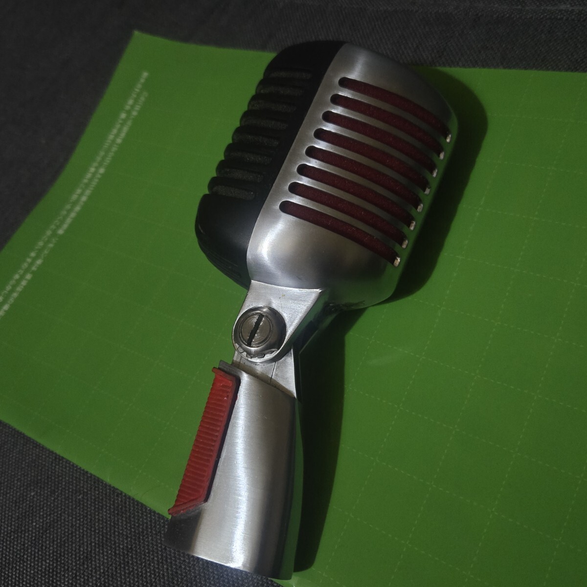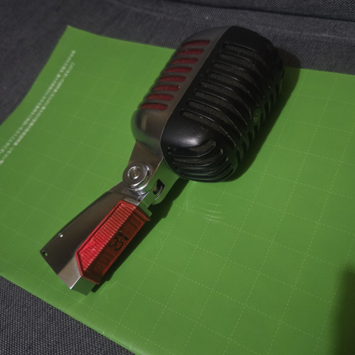 お芝居の舞台の小道具で使われていた物で、グリップの所の色が赤に塗られていたり、マイク本体の色がシルバーとブラックの色が違うなどの外身が変えられていますが、作動動作は問題なく行えます。個性派の物をお求めの方などいかがでしょうか?