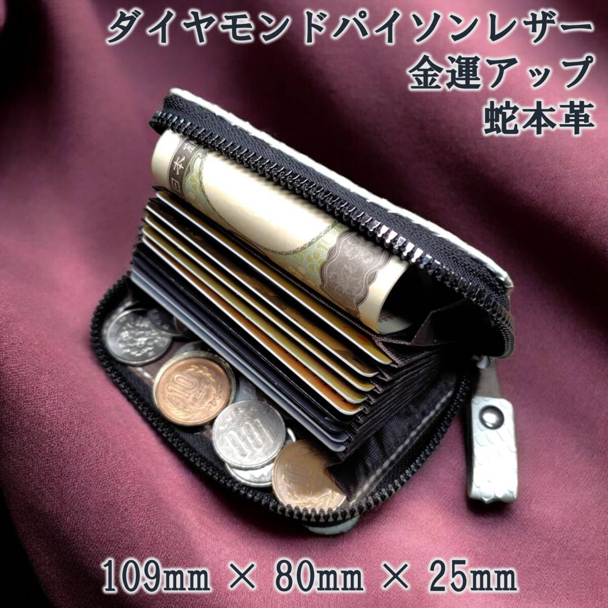カードケース 小銭入れ ラウンドファスナー ダイヤモンドパイソン パイソンレザー 財布 小物入れ ヘビ革 蛇革 本皮 本革 金運アップ