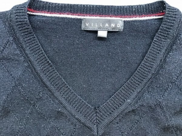 VILLAND ビランド しまむら メンズ Vネック アーガイル柄 ウール アクリルニットセーター M 黒 です。