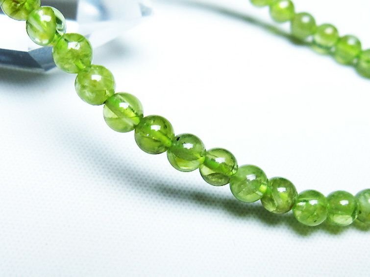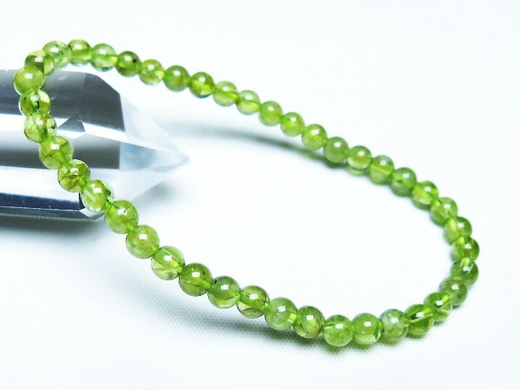 | ■商品名: ペリドットブレスレット ■商品ID: T283-10810 ■商品重量:約 6.7g ■商品サイズ:内周約:160mm(±5mm)粒直径約:5mm(±0.5mm) 【ペリドット(橄欖石)】 ペリドットは陽光を透かした夏の葉のような、明るく透明な黄緑の石です。その外見からも8月の誕生石として相応しく、明るく闇を吹き飛ばすエネルギーを持つとされています。 太陽の石とも呼ばれるペリドットは、闇夜でも輝く性質から、暗闇に光をもたらし困難の中でも希望を見出す力があると古くから信じられてきました。自身の持つ暗いエネルギーを発散させ、太陽の光を当ててくれるとされています。ネガティブなエネルギーから身を守るお守りとしても有効とされています。 暗い妄想や怒り、悲しみなどのマイナス感情が気づかぬうちに沸いてくる時には、元となる心の傷を癒し明るく前向きに進めるように手助けするとされています。また、自信をなくして落ち込んでいる時には、希望をもたらすとされていますので、落ち込み傾向にある方にもお勧めです。 ■ワンポイント情報 出会いを恋に発展させたり、社交性を広げ縁や人脈を増やすとされ、意中の人にも上手く近づけるようになるとされていますので、片思いの人の強力なお守りといえるかもしれません。また浮気がちな相手に持たせると浮気封じになるとされていたり、家庭を円満にするとされていますので既婚者にもお勧めです。 |