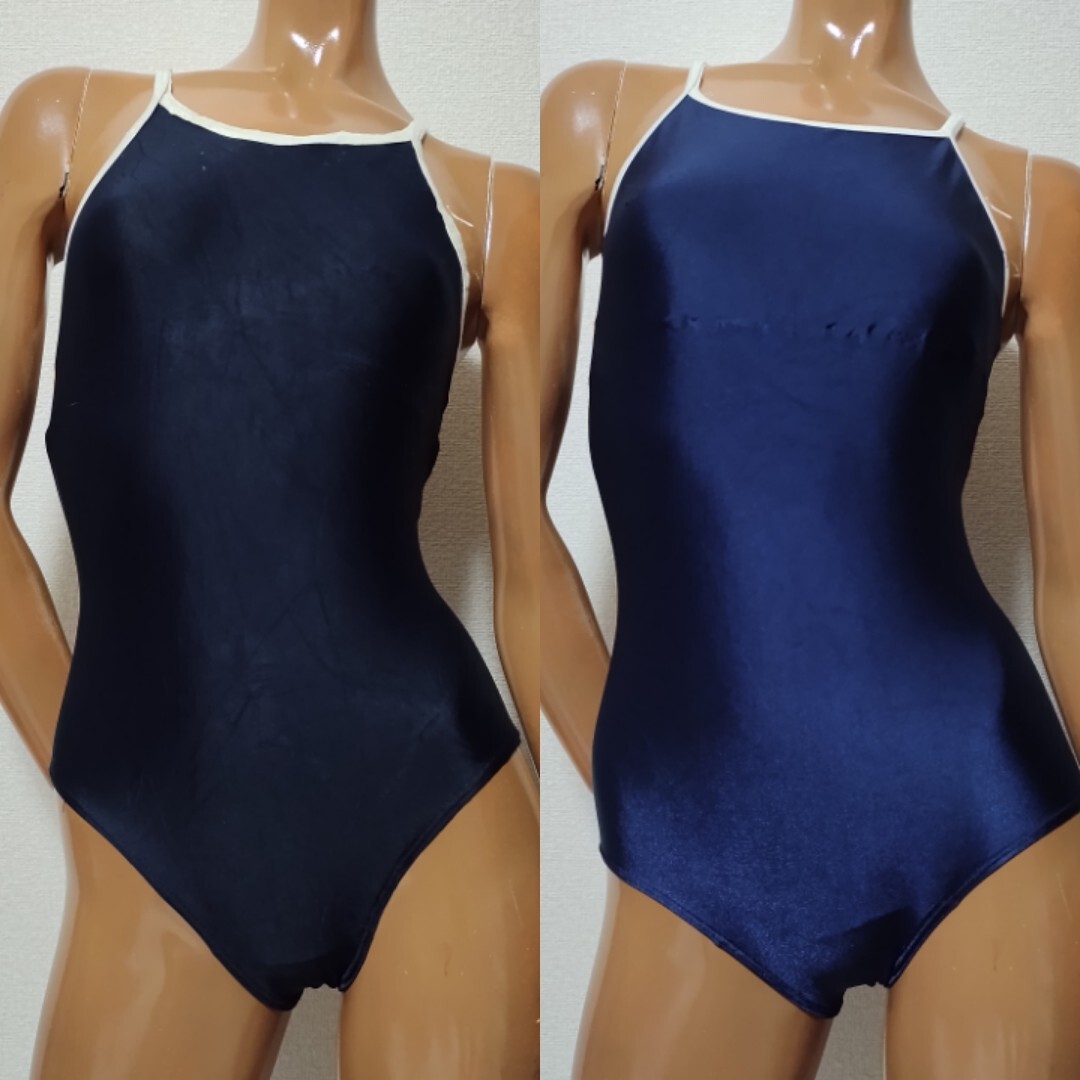 57【整理品リサイクル】女子競泳水着2枚セット160(Lサイズ程度)★グレイス・コンセルヴェ★光沢濃紺ネイビー白ホワイトパイピング★男性も