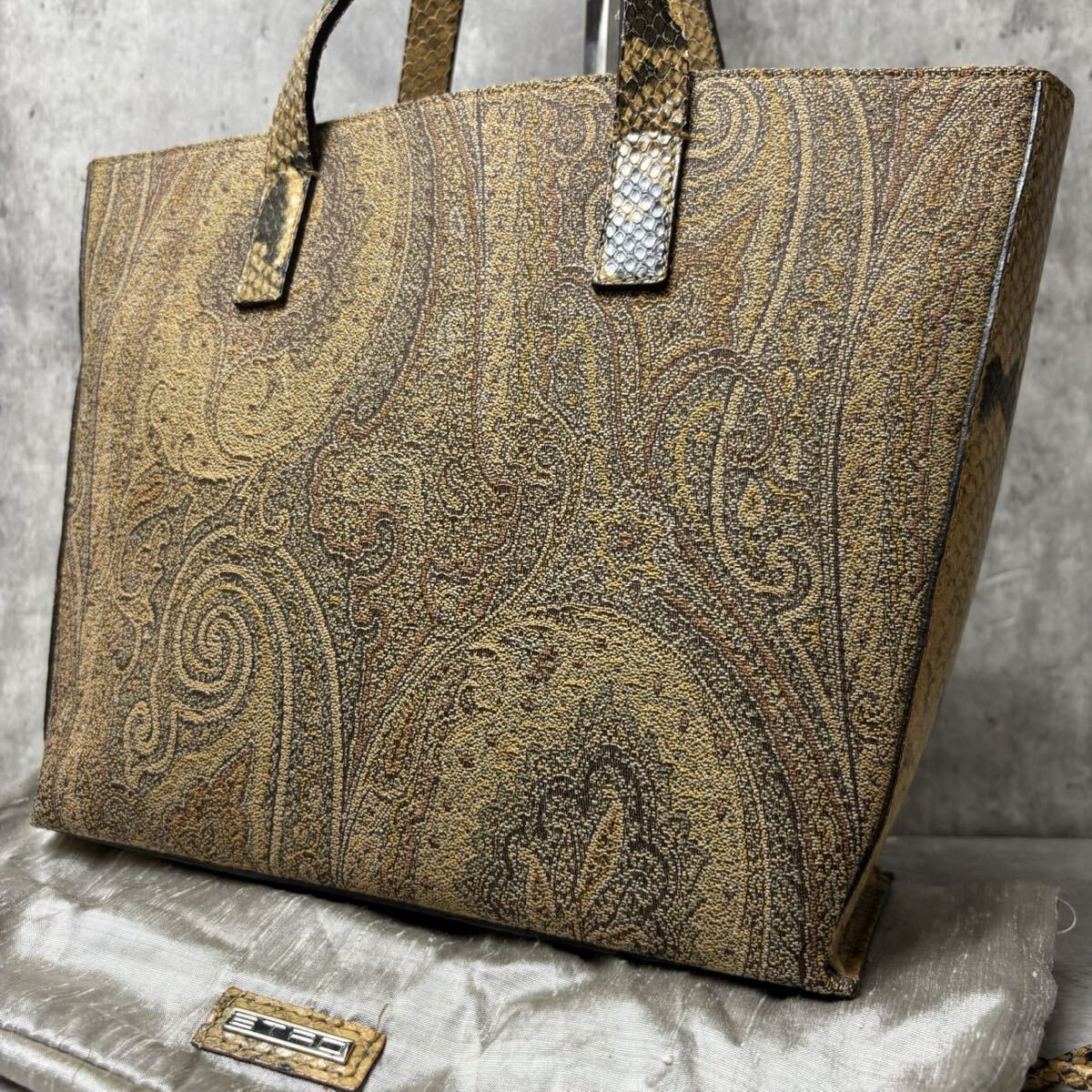 エトロらしい上品なペイズリー柄が全面に施された高級トートバッグ。