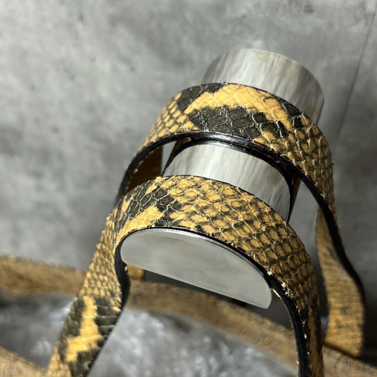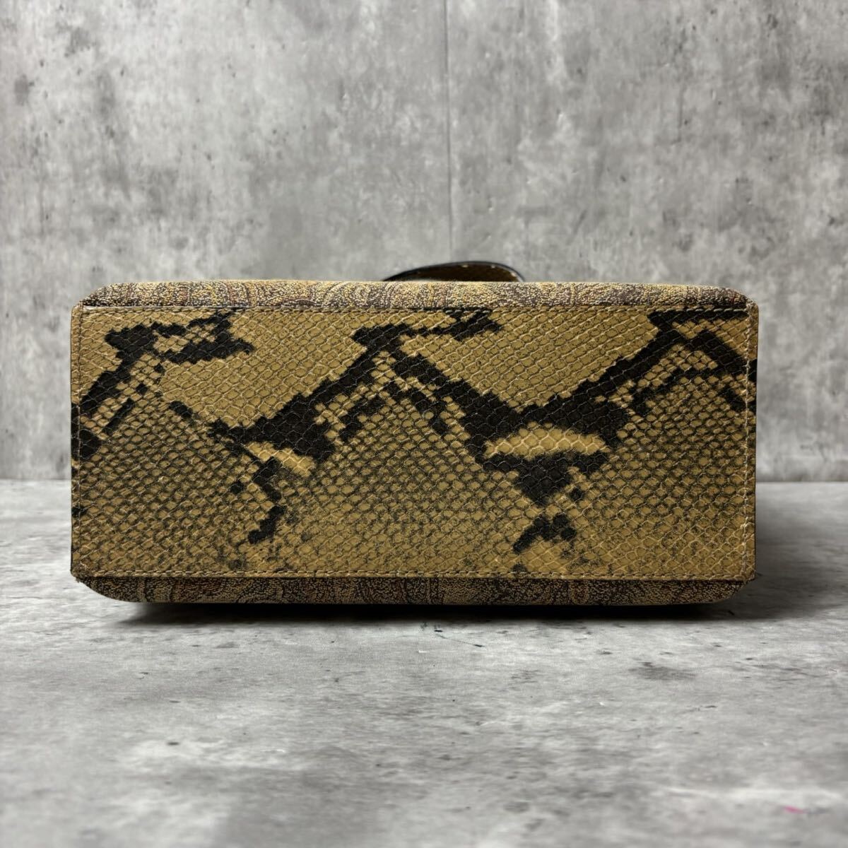 ハンドル部分にパイソンレザーをあしらい、独特の存在感とラグジュアリーな雰囲気を演出しています。