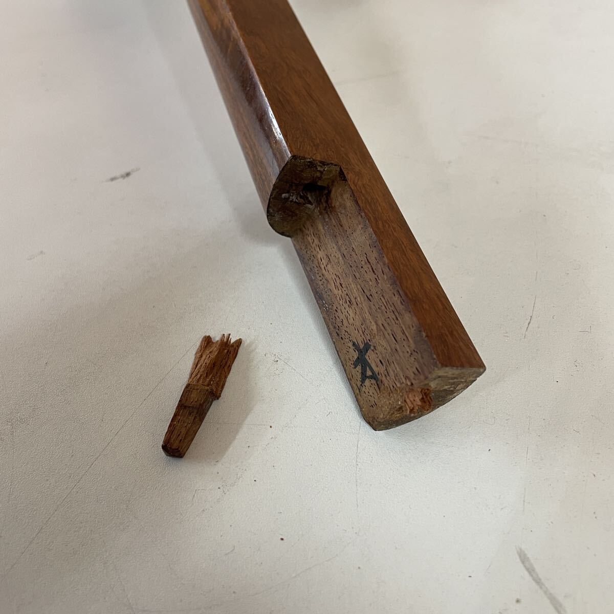 棹には金ボソ/金細、ミゾが見られません。上棹と中棹は接続部分が折れています。中棹と下棹は固着しているのか、接合部分が外れませんでした。