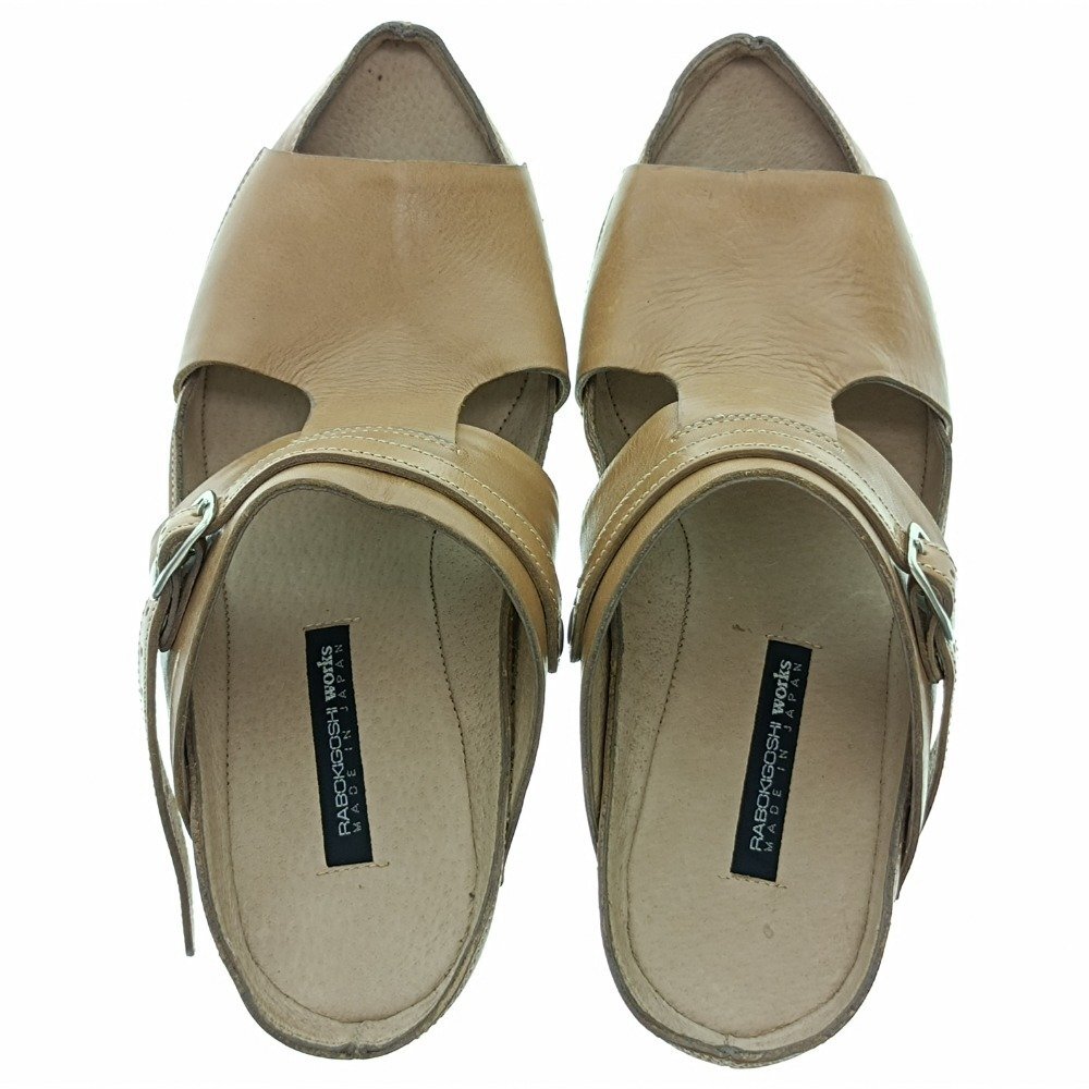 | RABOKIGOSHI ラボキゴシ 70mm ウェッジソール 本革 2WAYサンダル 12720 24cm ベージュ 舟型 レディース ブランド シューズ 中古 |