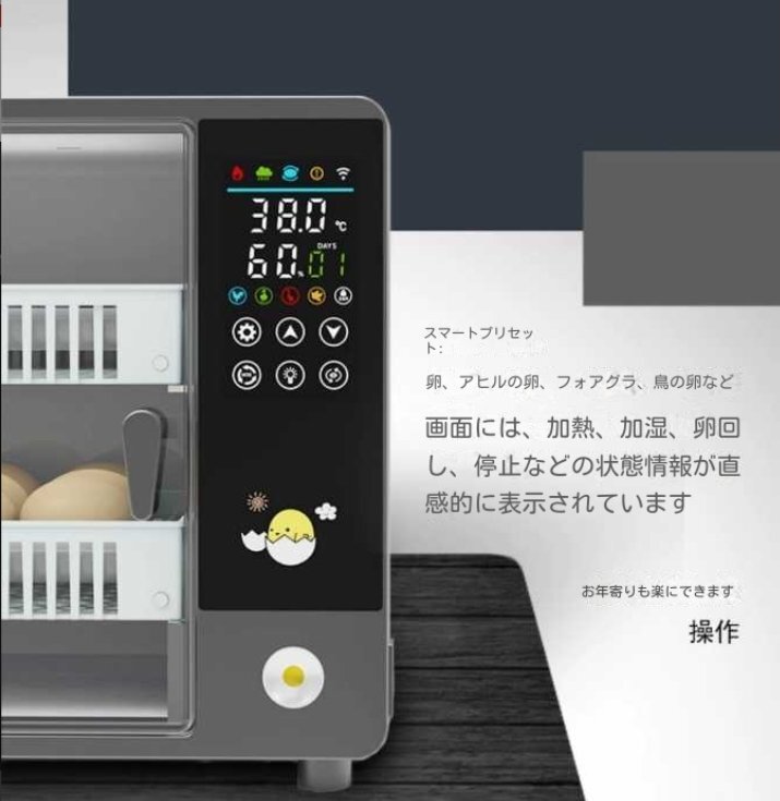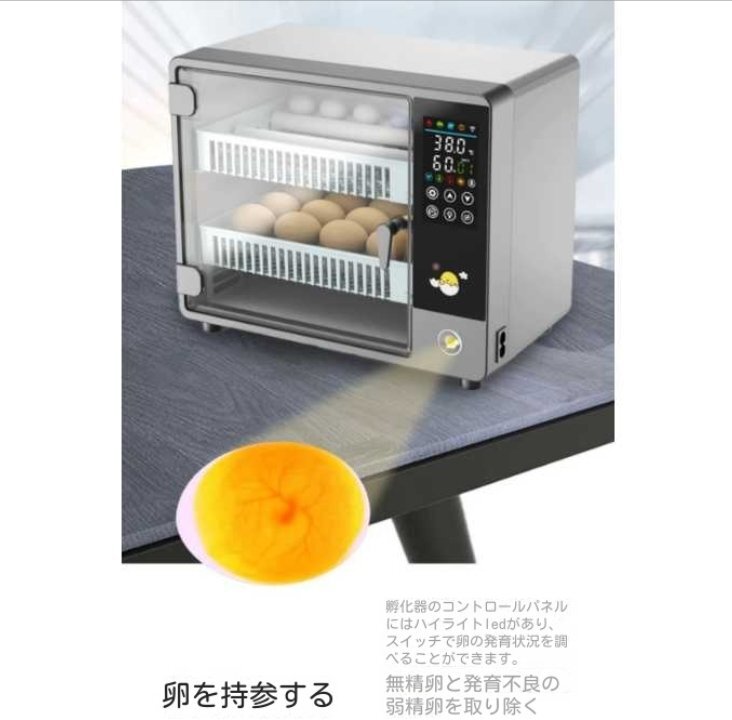 自動孵卵器 検卵ライト内蔵 自動転卵式 転卵式孵化器 大型インキュベーター 24個 自動温度調節 自動給水 デジタル表示 鶏卵 家庭用