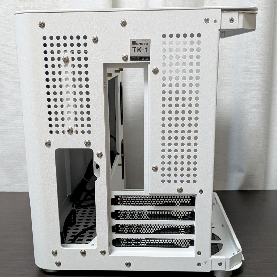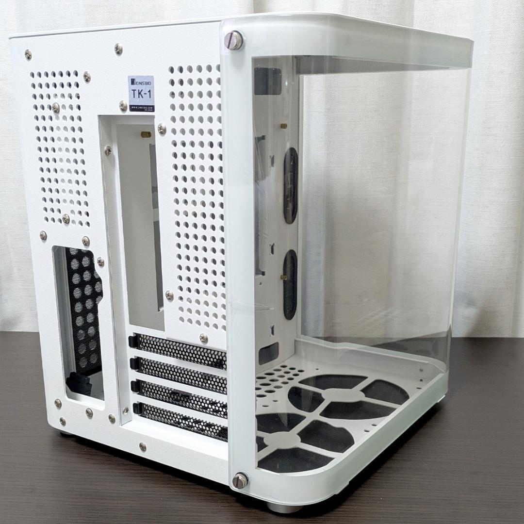 JONSBO TK-1 ピラーレスPCケース ご覧いただきありがとうございます。 ガラス曲面の美しさとM-ATXが十分収まるのにコンパクト感のあるケースです。 自作PCに使用しましたが、あまり稼働させないままバラしたので出品します。 ガラス面のフィルムはまだ剥がしておりません。 目立つ傷や汚れはないと思いますがあくまで中古ですので気になる方はご遠慮ください。 よろしくお願いいたします。