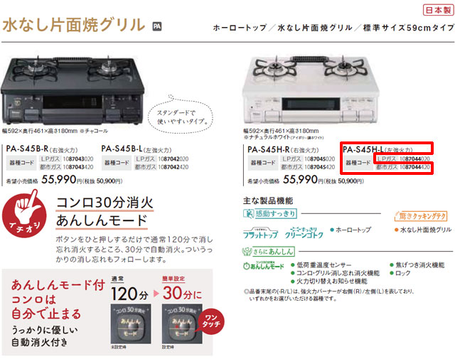 | メーカー・型式 | パロマ / PA-S45H-L | |