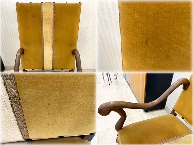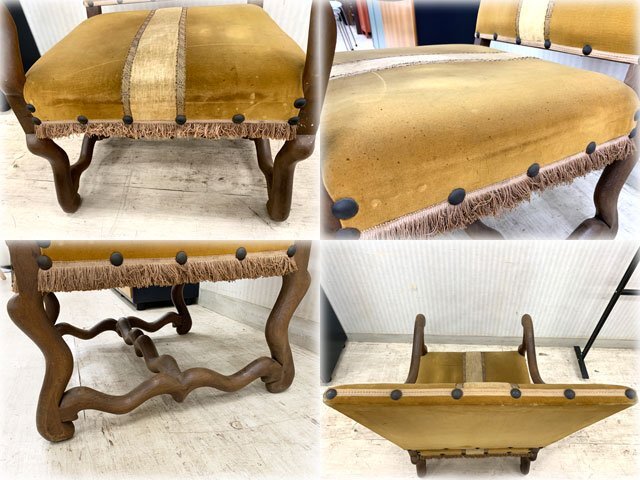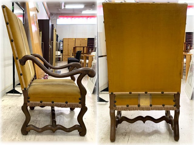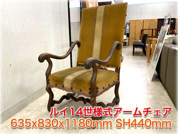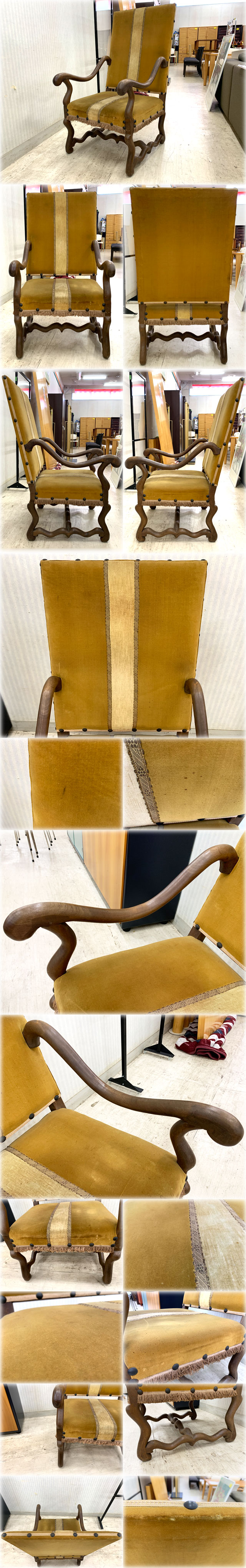 ルイ14世様式 アームチェア を出品いたします。 ■特徴■ 力強くうねりを見せる 脚や肘掛が印象的な、 ルイ14世様式のアームチェアです。 ルイ14世時世は フランス宮廷文化が最も華やかな時代で、 椅子は室内装飾の一部という位置付けであり バロック調の椅子は大きく豪華でした。 また宮廷儀式や座席配列の階級が 重要視された時代でもあります。 大きく豪奢な男性的装飾と 完全なシンメトリー性が特徴です。 アンティークのため やや汚れ等は見られますが、 味としてお愉しみください。 写真に写っている周りのものは付属しません。 発送はアート家財おまかせ便でお送りします。 格安出品いたしますのでこの機会をお見逃しなく! |