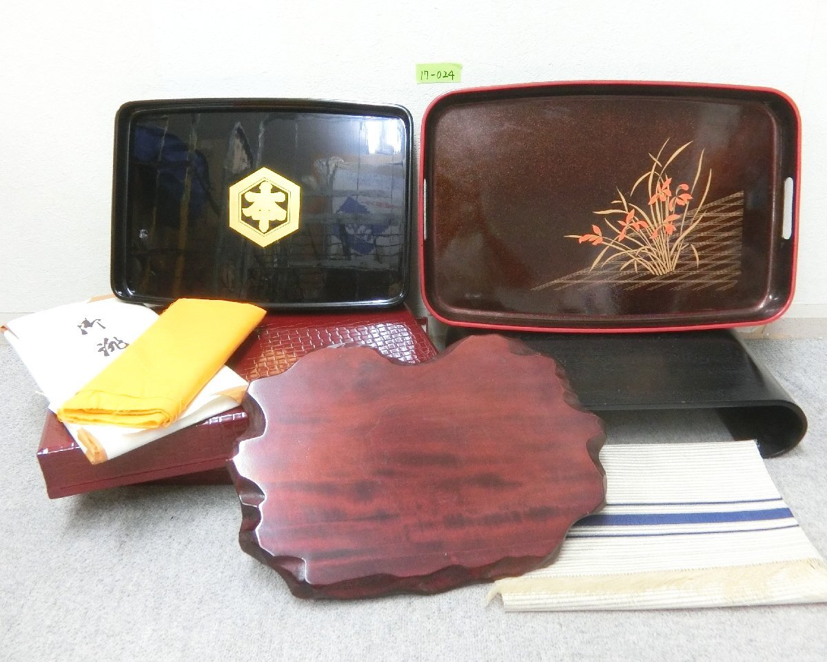 ●★17―024★漆器など 詳細不明 広蓋 約40×28cm/木製 花台/長角盆 など4点まとめて/茶道具 茶器 華道 敷板 骨董 古美術 [140]