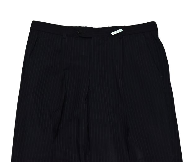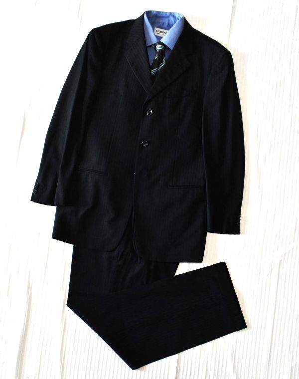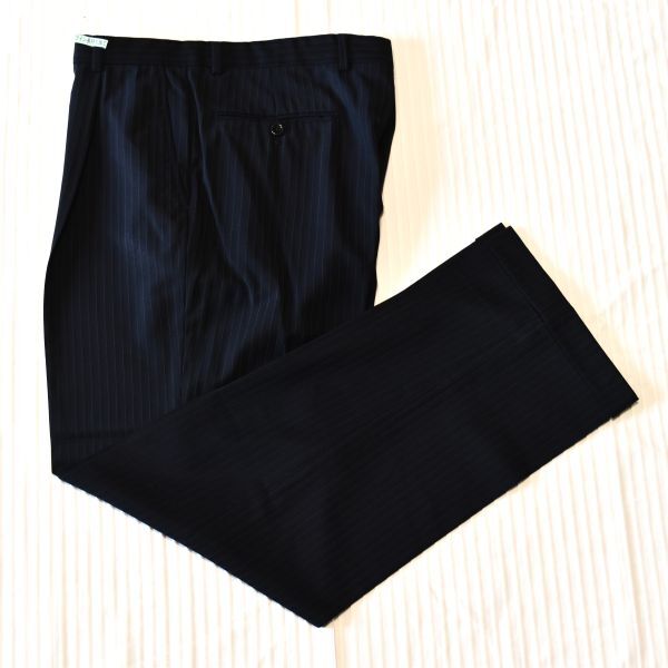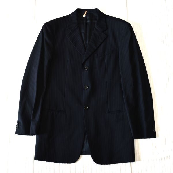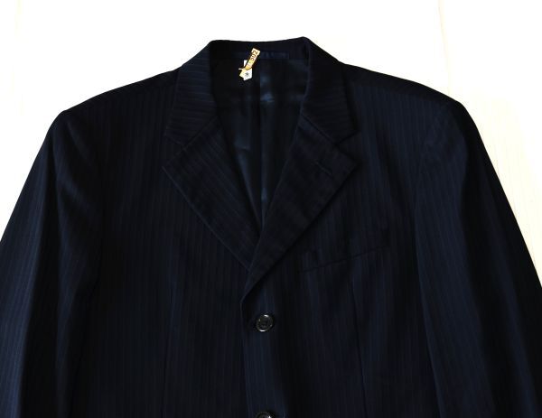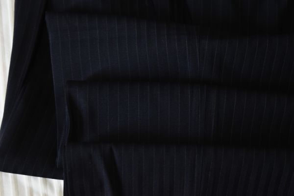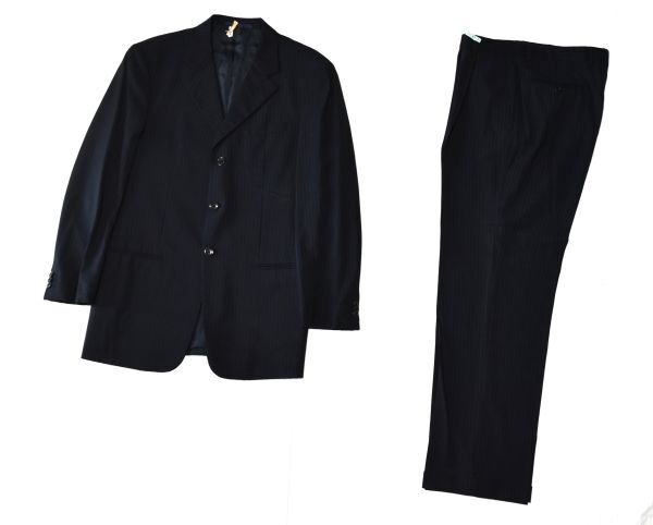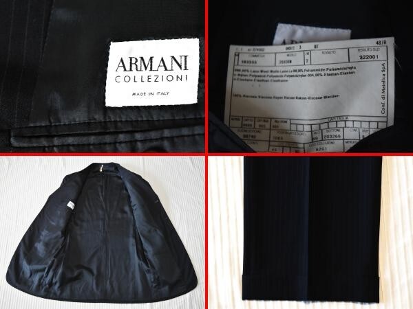 123★アルマーニ★ARMANI COLLEZIONI★人を惹きつける黒&ネイビーのストライプ 大人の上品さ色気あるセンスある男が選ぶ3釦スーツ48ML