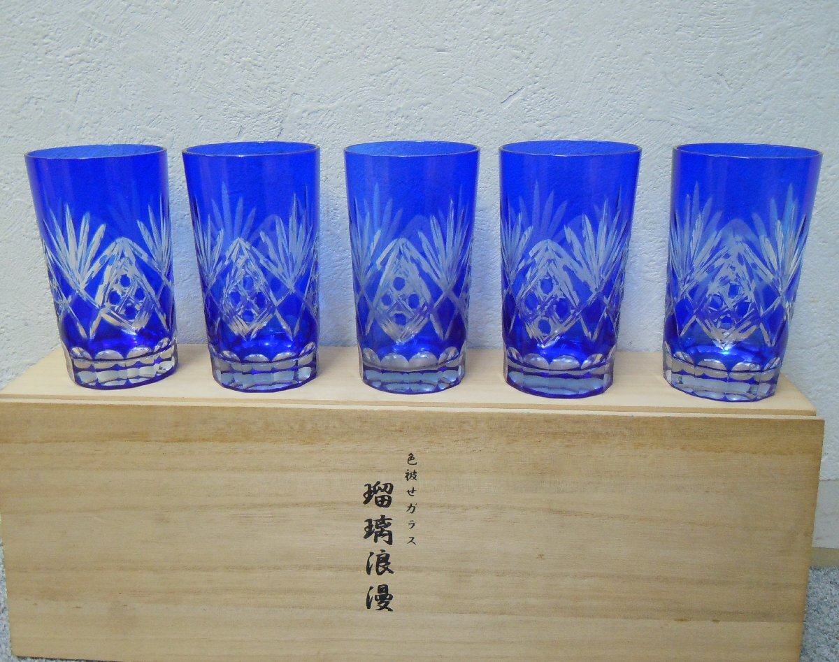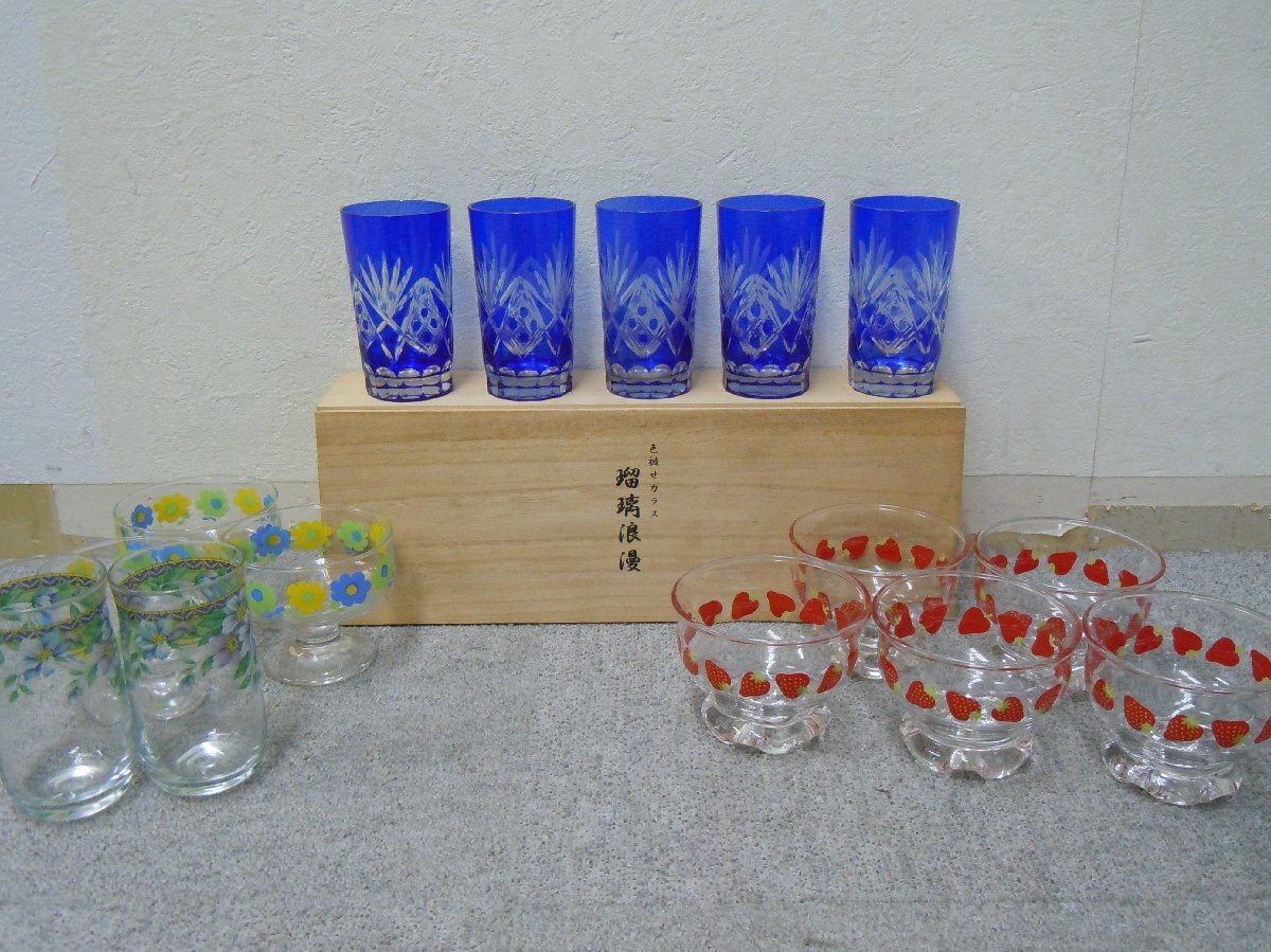 ★14―018★ガラス食器 色被せガラス 瑠璃浪漫 コップ デザートカップ など15点まとめ/工芸品 切子ガラス グラス レトロポップ[140]