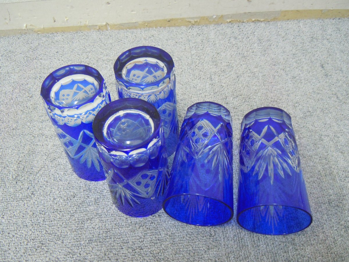 ●★14―018★ガラス食器 色被せガラス 瑠璃浪漫 コップ デザートカップ など15点まとめ/工芸品 切子ガラス グラス レトロポップ[140]
