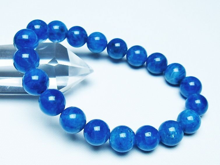 | ■商品名: アパタイトブレスレット ■商品ID: T149-7377 ■商品重量:約 35.1g ■商品サイズ:内周約:167mm(±5mm)粒直径約:10mm(±0.5mm) 【アパタイト(憐灰石)】 アパタイトはリン酸塩鉱物という鉱物グループの名称で、黄色・緑・青色・ピンク・紫色や透明などの多彩な色を持つ天然石です。 そのなかでも鮮やかで濃い青色をしたブルーアパタイトは人気が高く、一般的にはこのブルーアパタイトがアパタイトとして流通しています。 アパタイトは人間の骨や歯の主成分となるハイドロキシアパタイト(水酸燐灰石)とほとんど同じ成分で構成されています。 アパタイトの持つ成分には構造を強化したり吸着力を高める性質があり、このような独自の性質から、人間関係の繋がりを深め集団での結束力やパートナーとの関係を強固なものにする効果があるとされています。 「相手を思いやり人間関係を円滑にする」というパワーストーンは数多くありますが、アパタイトはそれらと少し趣が違い、自分の気持ちやありのままの自分を開放して人間関係を構築していくという意味を持ちます。 また、歯や骨・関節などの体や運動能力の育成に良い影響をもたらすともいわれており、子供の健やかな成長を願う方にはお守りとしてぜひ持ってほしい石です。 ⇒ アパタイトをもっと詳しく ◆ワンポイント情報 モース硬度5とあまり硬度の高い石とは言えないので、アクセサリーとして身に着ける際には衝撃を与えないよう取り扱いには十分に注意してください。 |