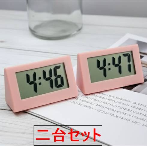 【送料無料】「特価」ピンク二台セット小型デジタル時計 テーブルクロック(楽天1010円)マグネット/卓上子ども部屋/キッチン/学習に便利!
