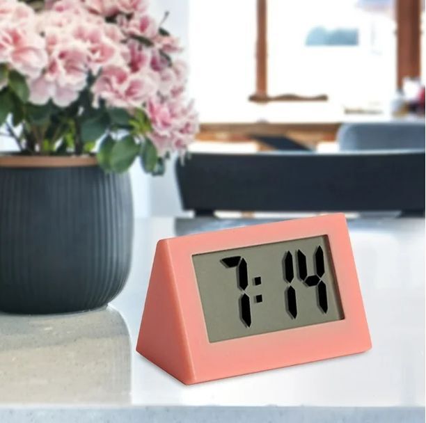 この**[画像のデジタル時計]**は、コンパクトなサイズでデスク周りや旅行先に最適です。