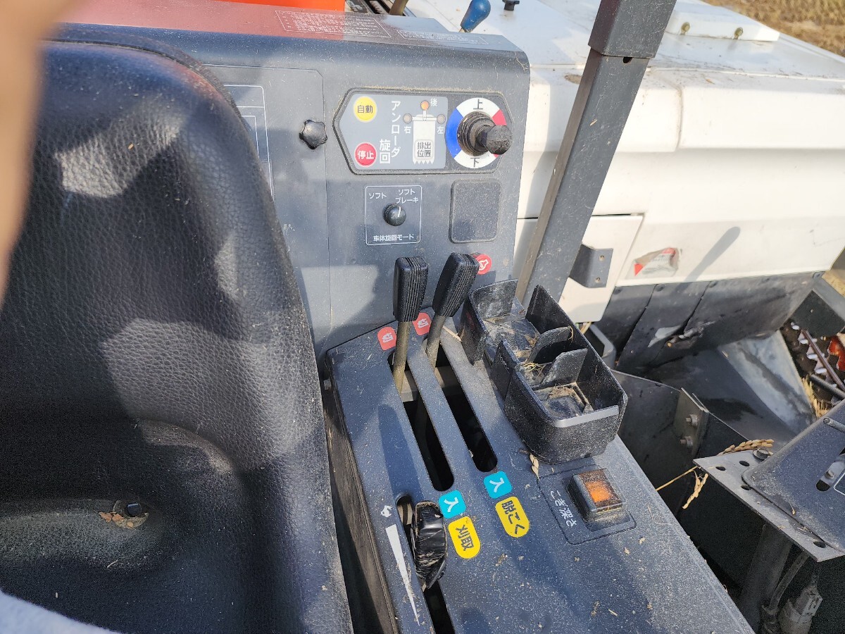 刈り取ったあとは自動でアームが回転して、簡単操作で上がり下がりして米を排出して簡単に積み込みできます