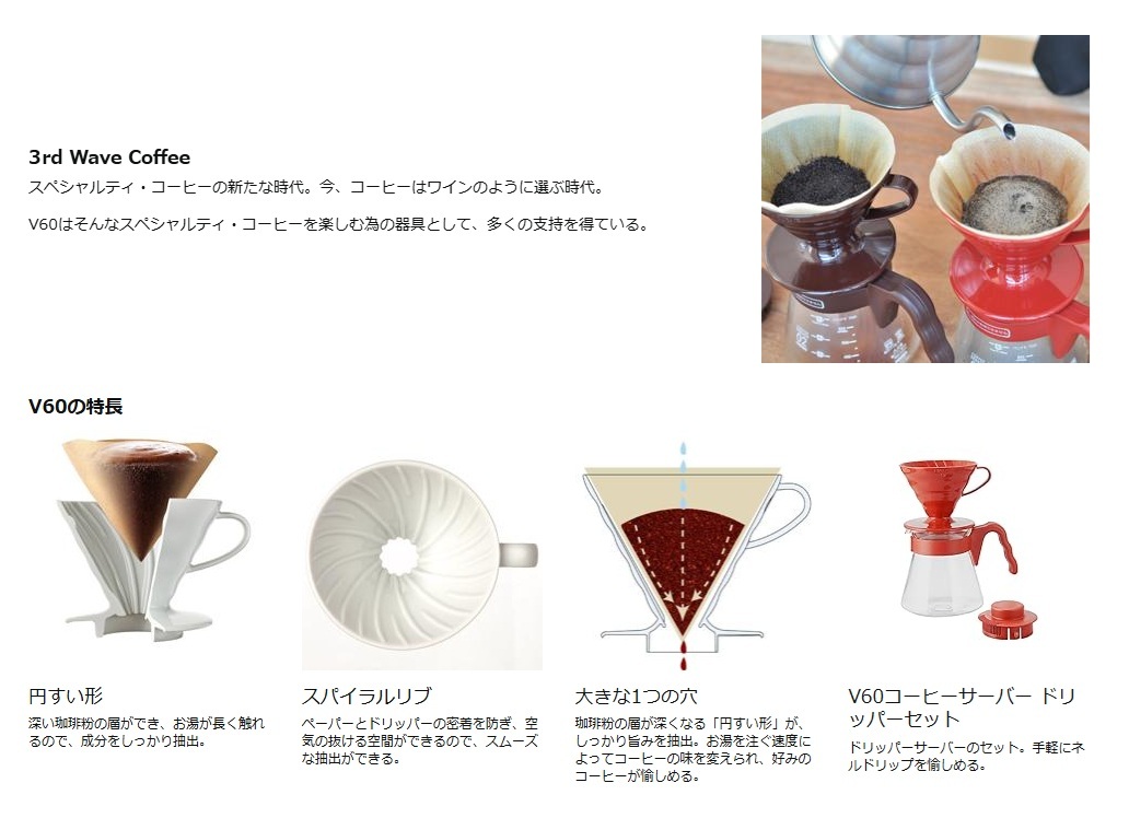 スパイラルリブが決め手。ペーパーを浮かせて、しっかり蒸らします。コーヒーサーバーは電子レンジOKです。