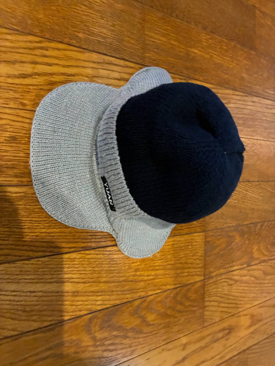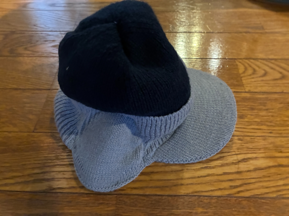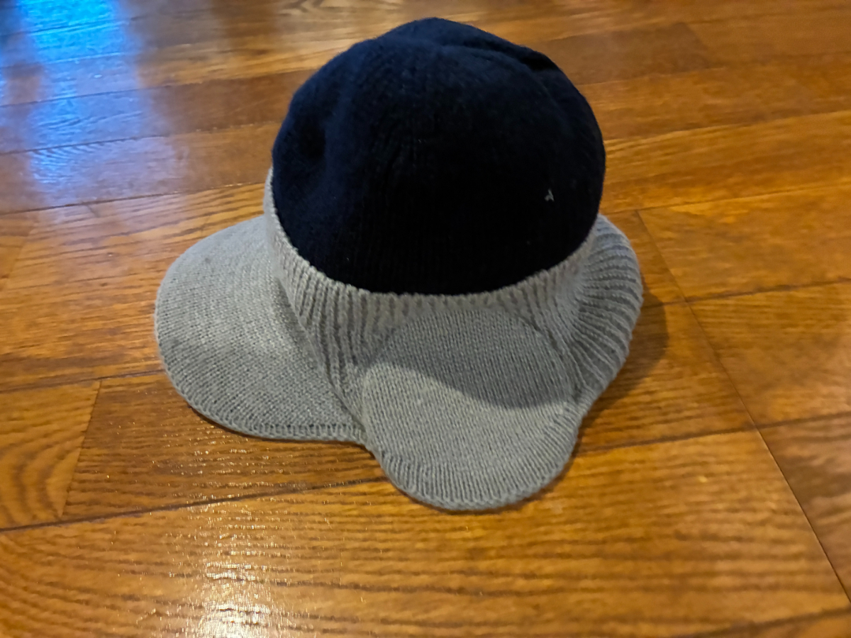 新品B4 冬用耳当て付き超防寒ウールボア 帽子 ネイビー/グレー