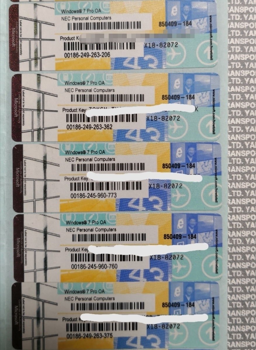 廃棄PCから剥がしたシールです。その為、破れや汚れ等はありますがプロダクトキーの部分は問題なく読めます。 発送なし、キー通知のみです。送料不要!