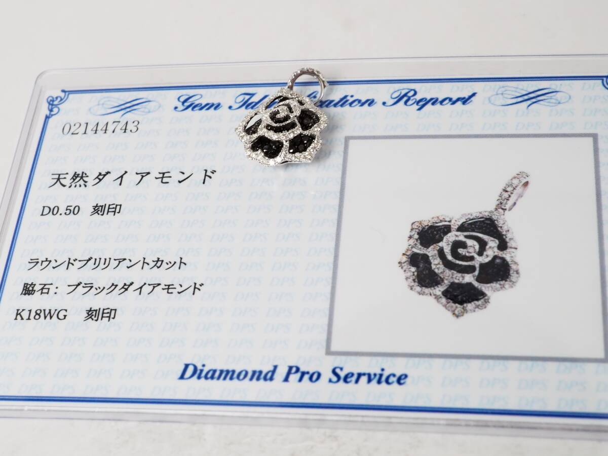 鑑別付 K18WG 天然ダイヤモンド 天然ブラックダイヤモンド 0.50ct/1.78g ペンダントトップ