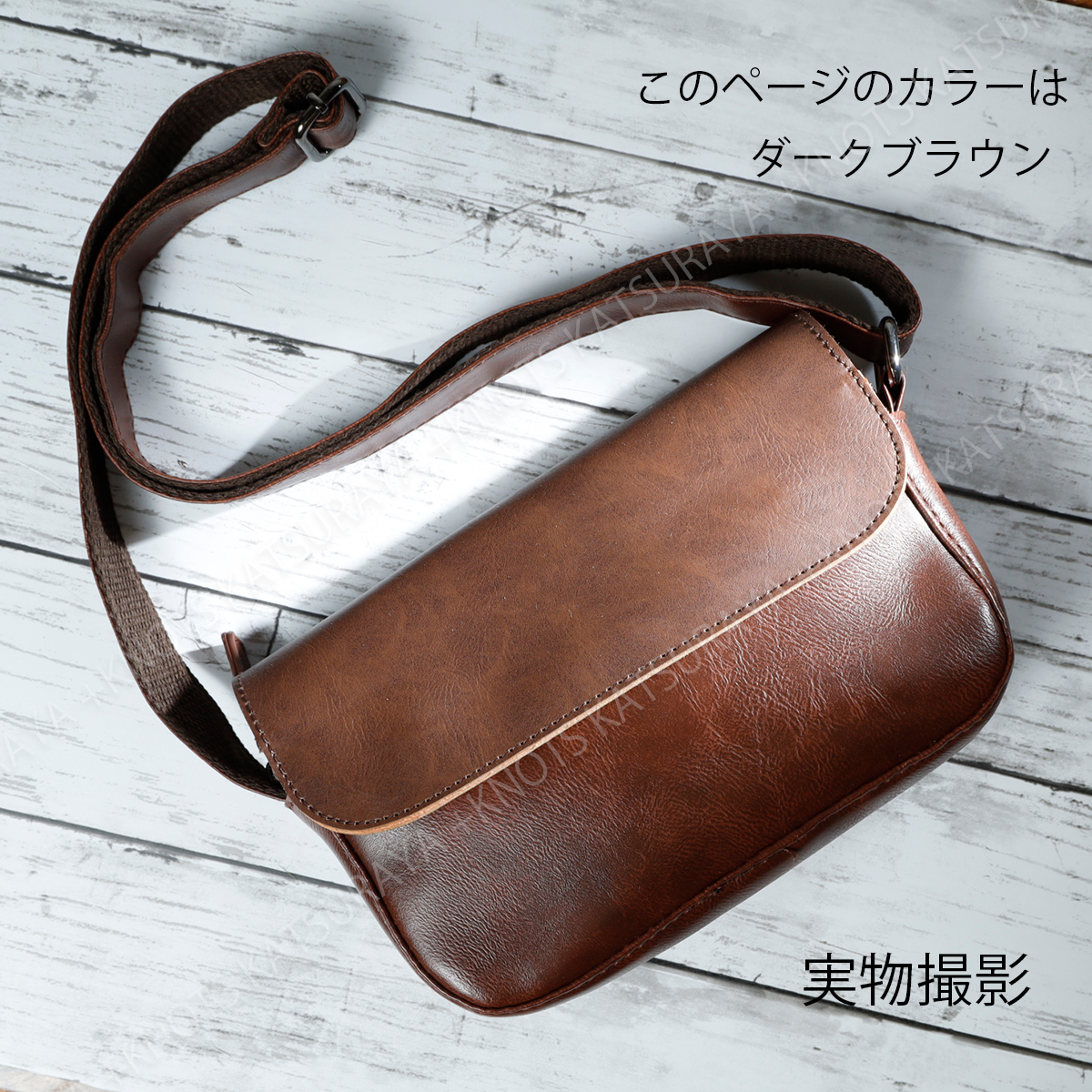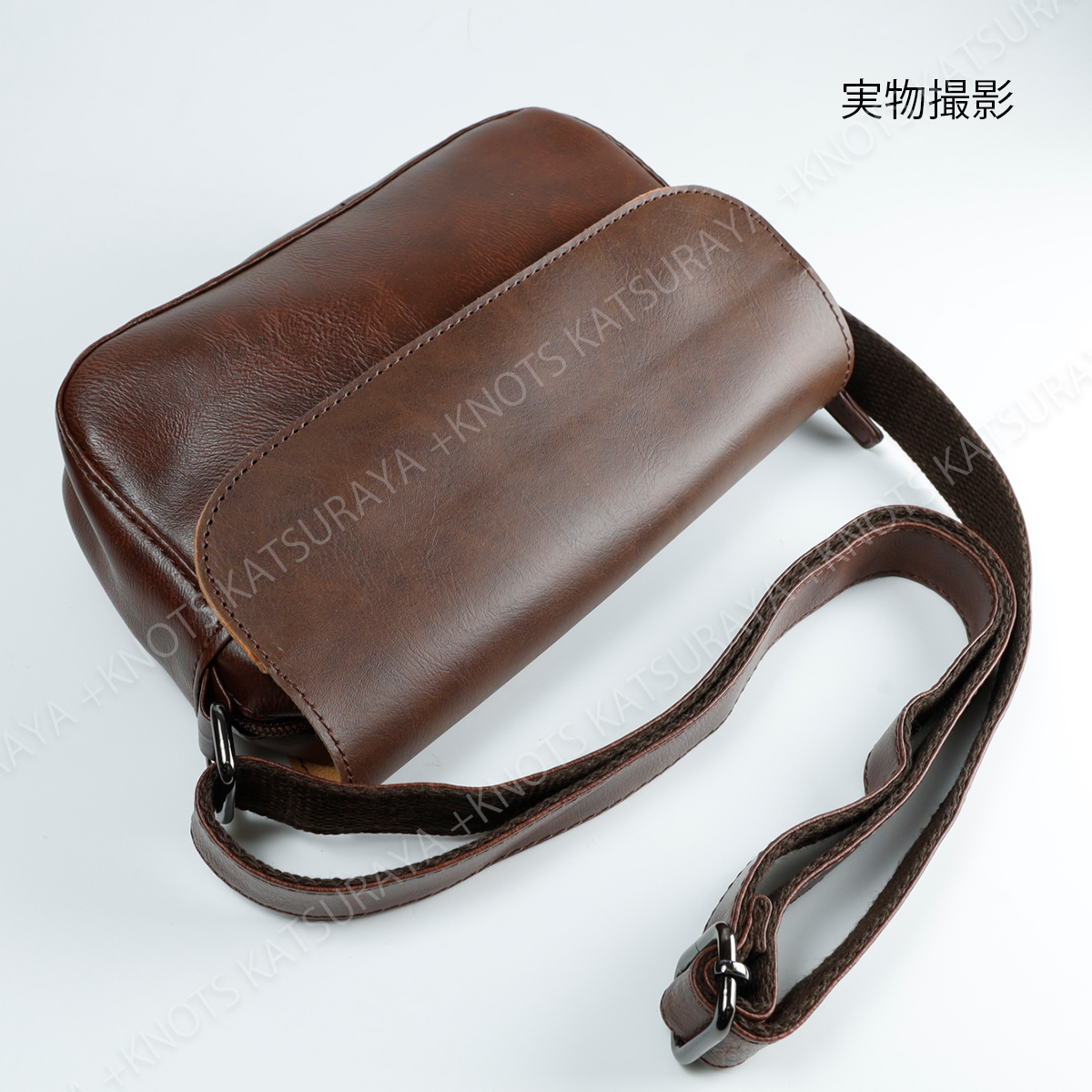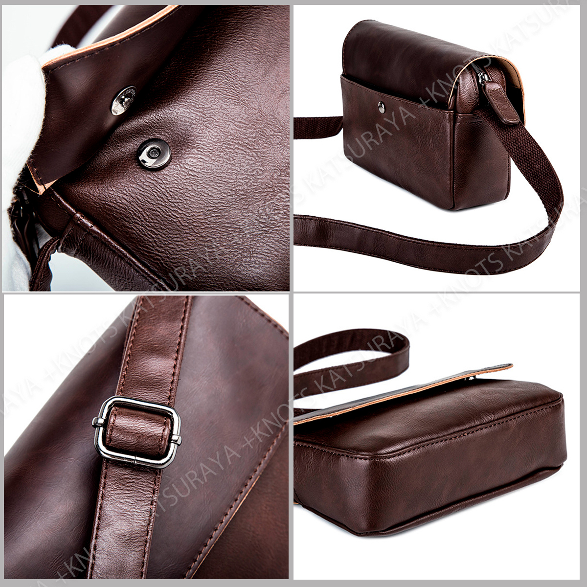 ミニ メッセンジャーバッグ★ダークブラウン★小さい メンズ ショルダーバッグ 斜めがけ スマホ ボディバックボディー レザー ウエストa374