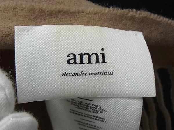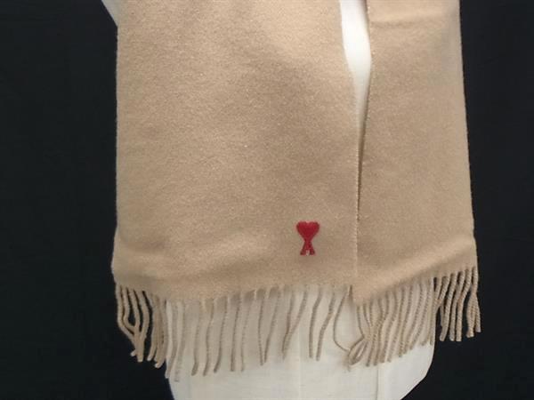 1円 ■美品■ AMI PARIS アミパリス ウール100% フリンジ マフラー 防寒具 レディース メンズ ベージュ系 FM4330