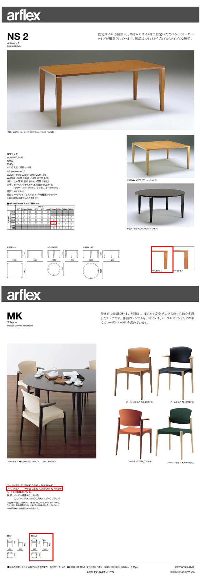 | メーカー・型式 |  アルフレックス /  テーブル : NS2F チェア : MK-A  |