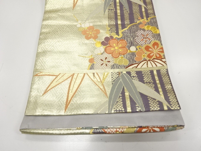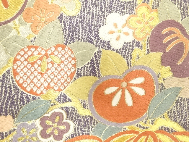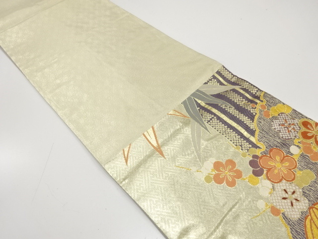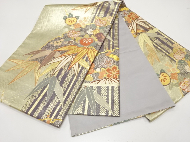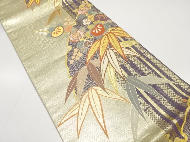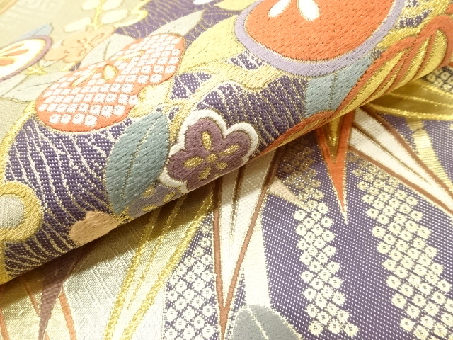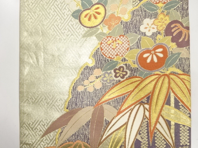 美品 雪輪に竹笹・橘模様織り出し 袋帯 (AJCA2K-002)