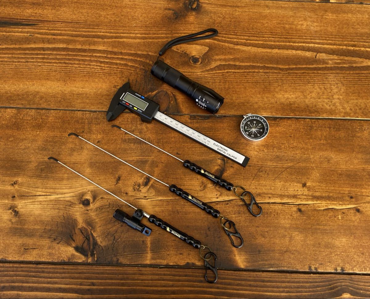 ◆掻き出し棒 改(ライト付き、締め込むことでライトつきます)約26cm 従来のライト付きをCNC旋盤加工パーツを用いて改良し取り外し可能にしました。ダイソーなどで売っている六角レンチで取り外し可能です。オリジナルロゴ入り