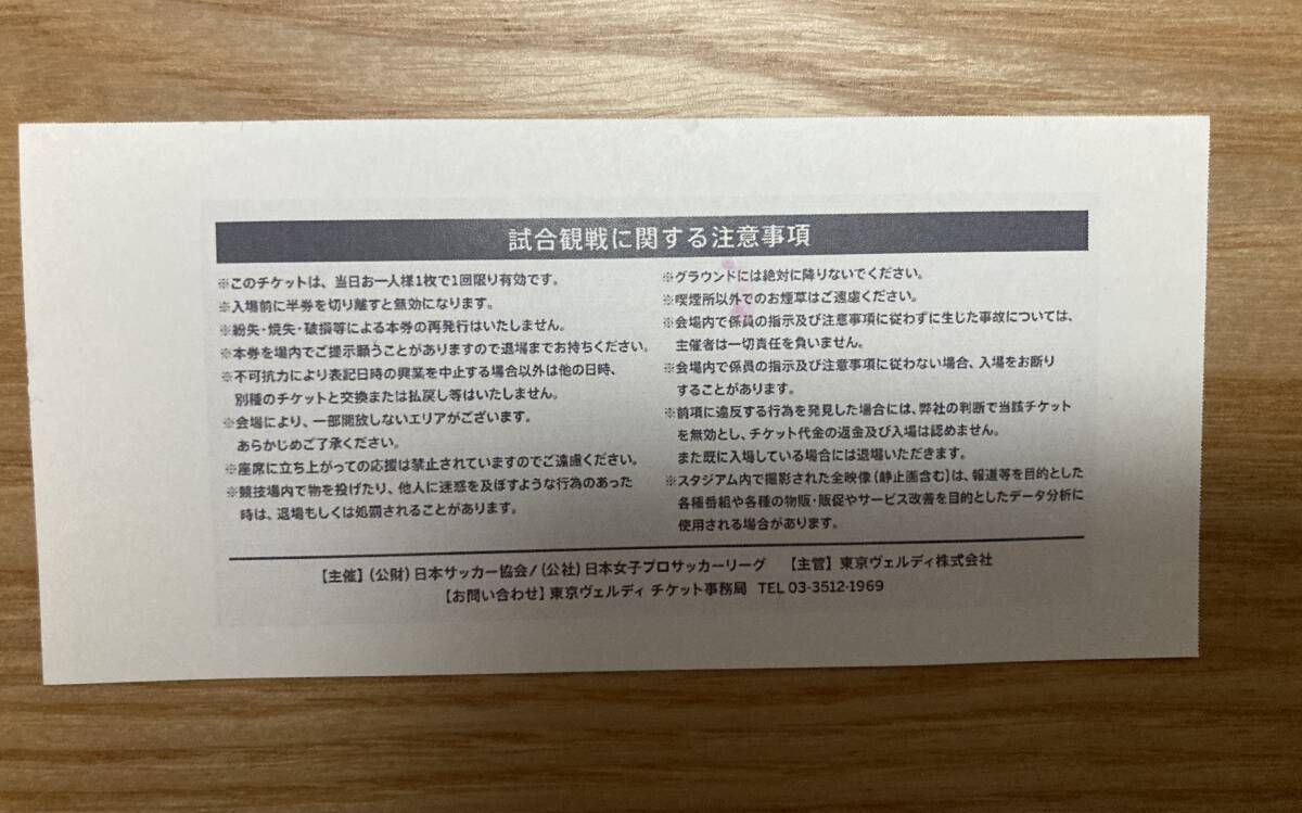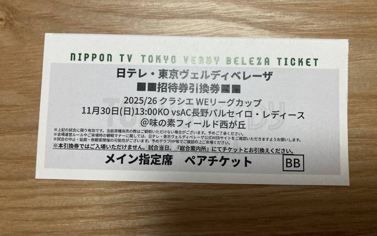 ☆日テレ・東京ヴェルディベレーザ 招待券引換券