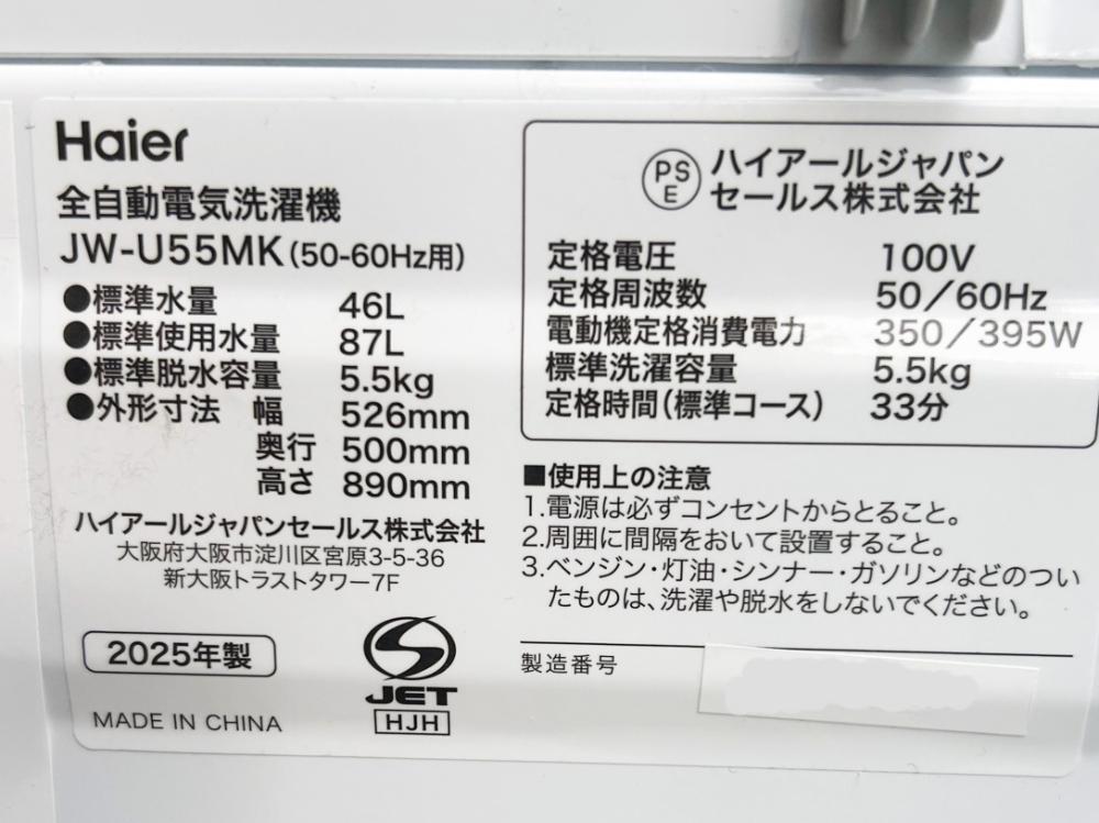 ★引き取りの大歓迎!! ご本人様が直接引取の場合、2,000円値引きます!! 是非お越しください♪ ★お取り置きOK!★ 3ヶ月間までは、無料でお取り置きできます! もしそれ以上の期間をご希望の方は、事前にご相談ください♪ ★送料無料★2025年製★極上超美品 中古★Haier 5.5㎏ 除菌水で部屋干し臭もしっかり洗浄! 全自動洗濯機【JW-U55MK-W】FR1K ※基本付属品は、洗濯機本体+給水ホース+排水ホースのみです。 ※その他付属品がある場合は、写真に写っているものが全てとなります。 ◆3回一通りの動作確認もしており、動作良好です。 ◆他にも出品しており、ご覧いただければわかりますが、細かすぎるかもしれませんが、私が気が付いたキズ等に関して、できる限りアップ写真を掲載しております。こちらの商品に関しては、私が見る限りで申し訳ございませんが、傷や汚れ等なく、全体的にはとても綺麗で、極上超美品だと思います。 ※但し、中古品の為、私の気づかないキズ・汚れ等あるかもしれませんので、気になる方はご遠慮ください。 是非、ご検討をお願いします。 【商品説明】 ■すすぎ1回の洗剤に対応。節水にもなる「標準(B)コース」 ■毎日が忙しい人に。最短10分で洗濯終了「お急ぎコース」 ■スーツは自宅で洗う時代に。スーツを優しく洗浄「洗えるスーツコース」 ■除菌水で部屋干し臭もしっかり洗浄「除菌コース」 ■お気に入りの香りをもっと楽しむ「香アップコース」 ■輝く白さを追求。洗剤2倍でしっかり洗う「超洗浄コース」 ■2分間槽洗浄を含む3種類の「槽洗浄(1,2,3)コース」 メーカー Haier 製品寸法幅526×奥行500×高さ890mm 製品質量26.0kg 対応防水パン幅490×奥行500㎜ 洗濯・脱水容量5.5kg 風乾燥容量2.0kg 乾燥方式風乾燥 洗濯槽/脱水槽ステンレス 標準洗濯時間33分 標準使用水量87L 水位5段階/12-46L 2025年製 詳しくはこちら↓ ◆動作保証しておりますので、商品到着後3日以内に落札後の商品お取引画面から、動作不良等の内容をメッセージ連絡頂きましたら、初期不良対応は致します。但し、電源が入らない、全く稼働しない致命的な不具合に限ります。 ◆簡易清掃を行っております。 当方としては、清掃を行っておりますが、あえて簡易清掃と言わさせていただきます。 神経質な方や、新品同等のレベルをお求めの方、気になる方はご遠慮ください。 ◆その他、素人なりに慎重に確認したつもりですが、中古品の為、私の気づかない傷や汚れ等あるかもしれません。 専門的・神経質な細かな点までの対応はできませんので、基本的にノークレーム・ノーリターンでお願いします。 ※下記内容を最後まで、必ずお読み下さい。 ご入札・落札の際は、ご了承頂いたものとみなします。 注意事項★☆★☆★☆★☆★☆★☆★☆★☆★☆★☆★☆★☆★☆★☆ ●ヤフオクシステム改定に伴い、「 受取連絡 」が非常に重要となりますので、商品到着後24時間以内に受取連絡された方のみ、初期不良対応・保証対象とさせていただきます。 ●私としてで申し訳ございませんが、できる限り誠意ある対応を心がけているつもりですが、顔の見れないお取引が故に色々な方がおり、また人それぞれ感性など異なりますので、ところどころ、あえてと記載させて頂いております。 ●初期不良対応・保証に関して、お届け先へ商品到着後、3日以内が保証対象となります。 ●商品が届いたご住所で動作確認等行ってください。移動しますと保証対象外になります。 ●万が一、商品に不具合等がございましたら、落札商品お取引画面から具体的な不具合等の内容をメッセージして下さい。商品到着後、3日以内メッセージを頂けていない場合は、保証対象外となりますので、必ずお願いいたします。 ●家電に関しては、あえて、電源が入らない・全く稼働しないなどの致命的な不具合、家具類など電気を使わないものは、その物として成り立たない物に限らさせていただきます。 ●動作確認・状態確認が終わるまで、梱包材・運送会社の伝票など必ず保管してください。保管されていない場合、初期不良対応・保証ができなくなる場合がございます。 ●運送事故の恐れがあった場合、所有権がお客様側に移っておりますので、お客様にて運送会社とのご対応をしていただくことになりますが、穏やかなお話合いができる方に関しては、不慣れかと思いますので、こちらもできる限りのご協力をさせていただきます。 ●当方は、運送会社が起こしたトラブル・遅延に関しては、一切の責任を負いません。 ●商品に不具合等あっても、設置代金等、一切の責任を負いません。 ●勝ってな返品物に関しては、一切受け取りません。 ●未チェック品、現状品、ジャンク品、訳あり品として出品しております物は、一切の保証・初期不良対応・返品応対は行いません。また、キャンセルもお受けいたしません。 ●対応前、対応中に一方的に評価されたり、自己完結されたり、決めつけられたり、お話合いにならなかったり、暴言を吐かれた