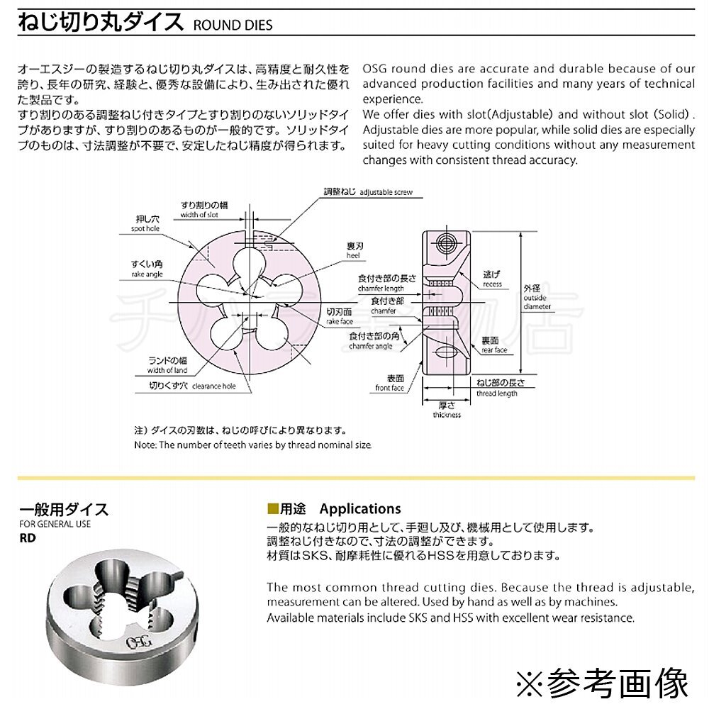 処分品 オーエスジー(OSG) 丸駒ダイス RD(SKS) 38径 W1/4-20 6個セット ウイット並目 ねじ切り丸ダイス 一般用