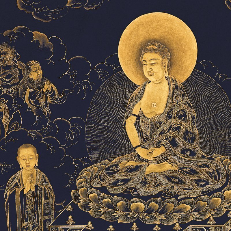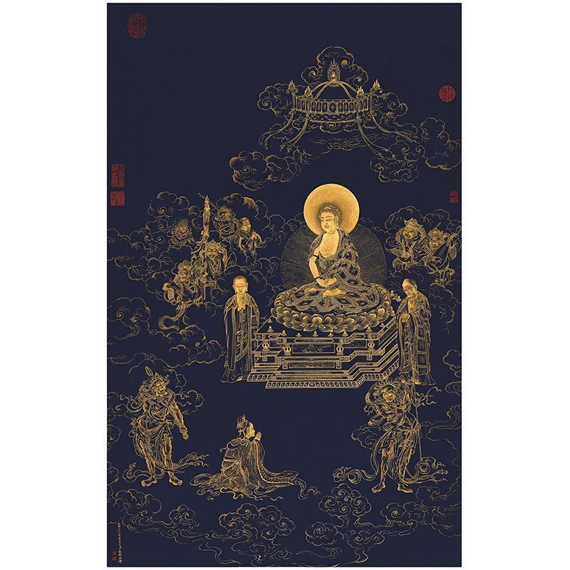 仏教美術 清 丁関鵬 無量寿仏図 阿弥陀仏 仏画 釈迦牟尼 復古 書画 蒔絵仏像 絹布 絹本 東洋画 中堂画 掛け物 未表装