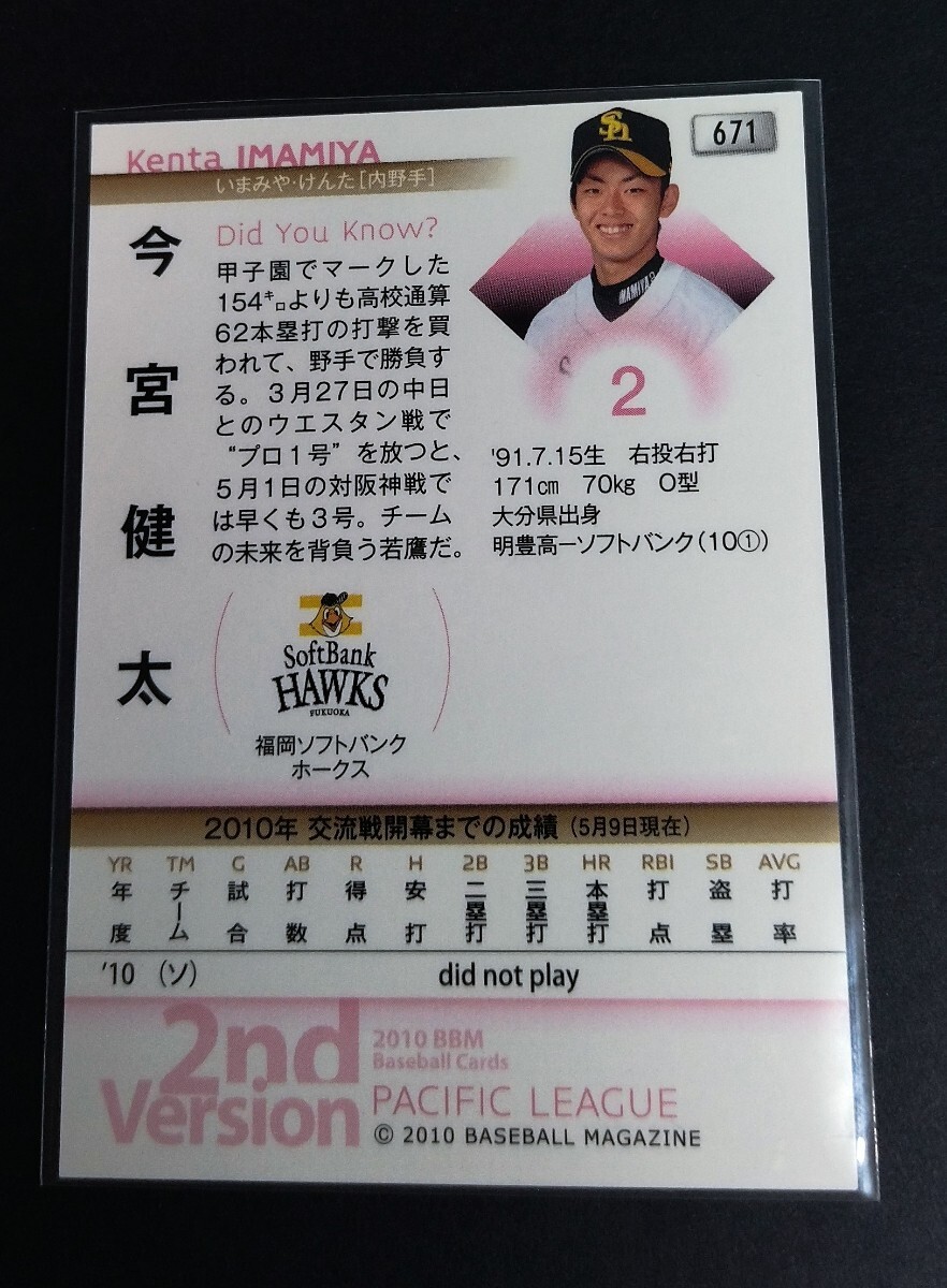 2010年BBM 2nd 今宮健太(ソフトバンク)ルーキー!No,671。