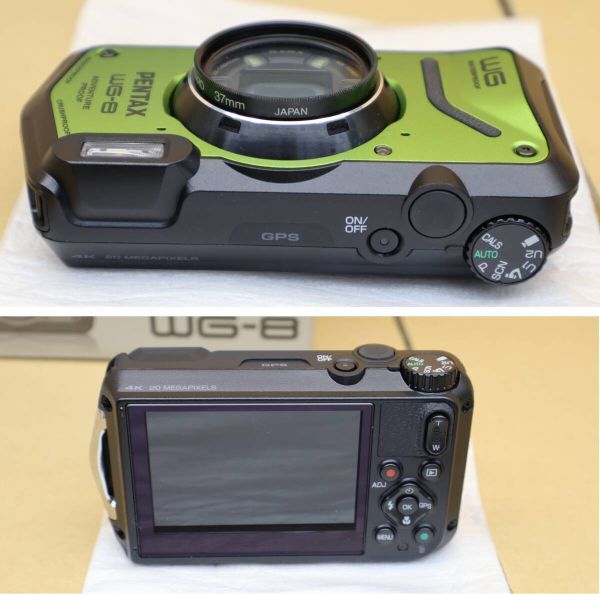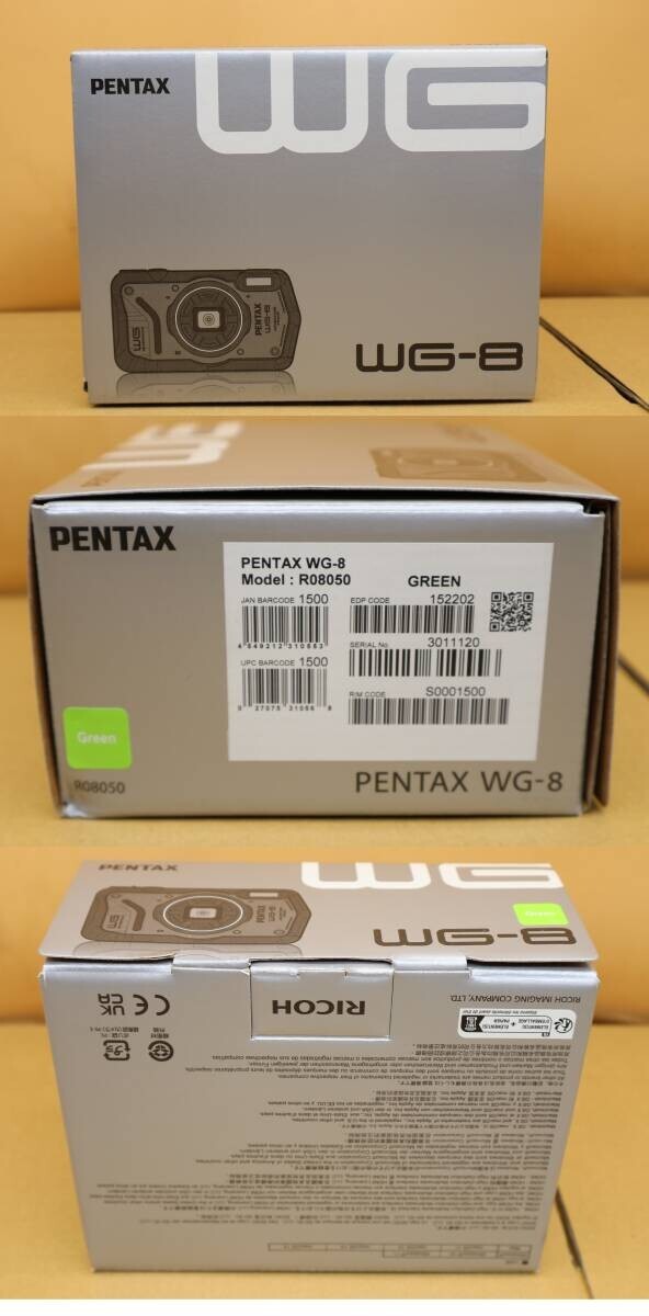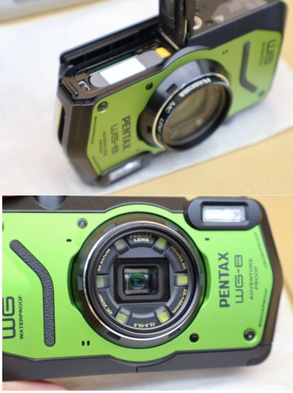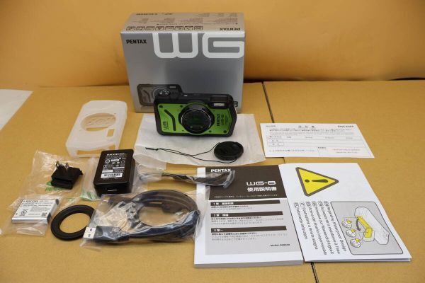 美品 動作品 ペンタックス PENTAX WG-8 グリーン 本格アウトドアカメラ 本格20m 防水 2000万画素 4K GPS内蔵 購入日25年3月