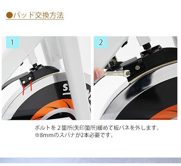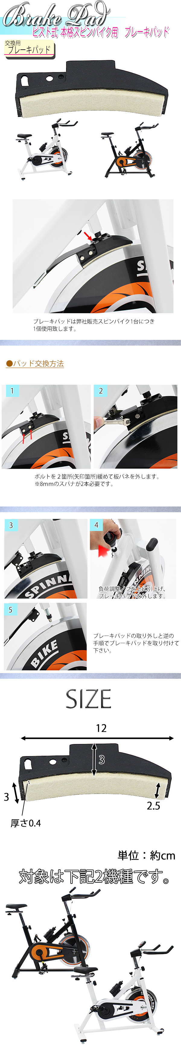 | 商品紹介 | ●弊社販売のスピンバイク用ブレーキパッドです。 ●ブレーキパッドの交換にご使用下さい。 ●簡単に取付が可能です。 ●重量:約50g ●材質:アスファルトフェルト、プラスチック ※こちらの商品の取付けには8mmのスパナが2本必要になります。 モンキーレンチ等でも代用できます。 (工具はお客様でご準備下さい。) ★ご購入前の注意事項★ |