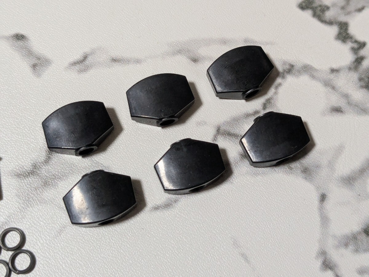 ●ナットのネジ溝、ボタンのネジ溝、取り付けネジはネジ頭、溝、樹脂ボタン、樹脂ワッシャーはいずれも繊細なために強度が無いために破損し易いですので取り付け時は慎重に扱われて下さいませ。