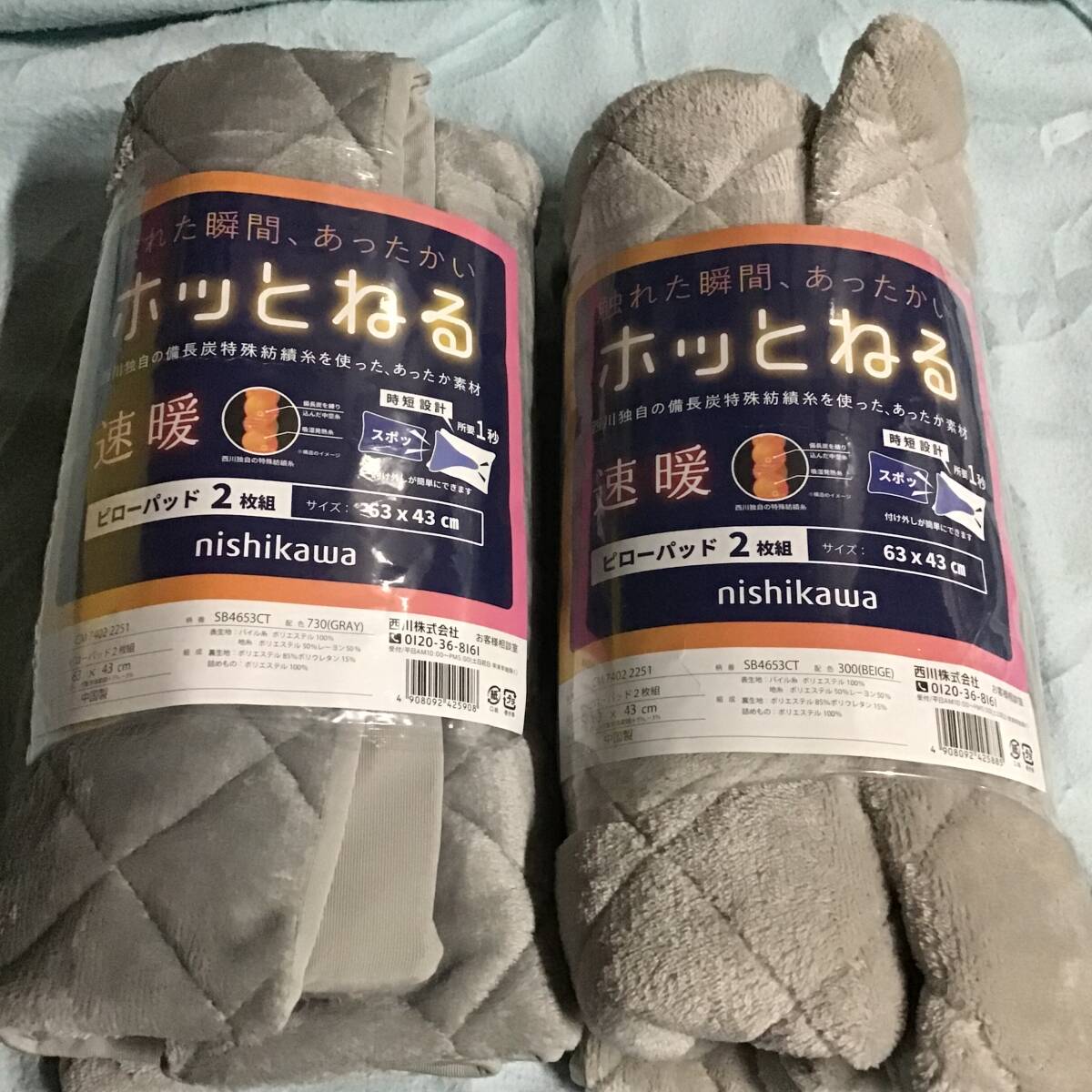 《 H 648 》★新品未使用★ 西川「ホッとねる ピローパッド 2枚組」ベージュ グレー 2セットまとめ 枕カバー コストコ仕入れ 定価1897円