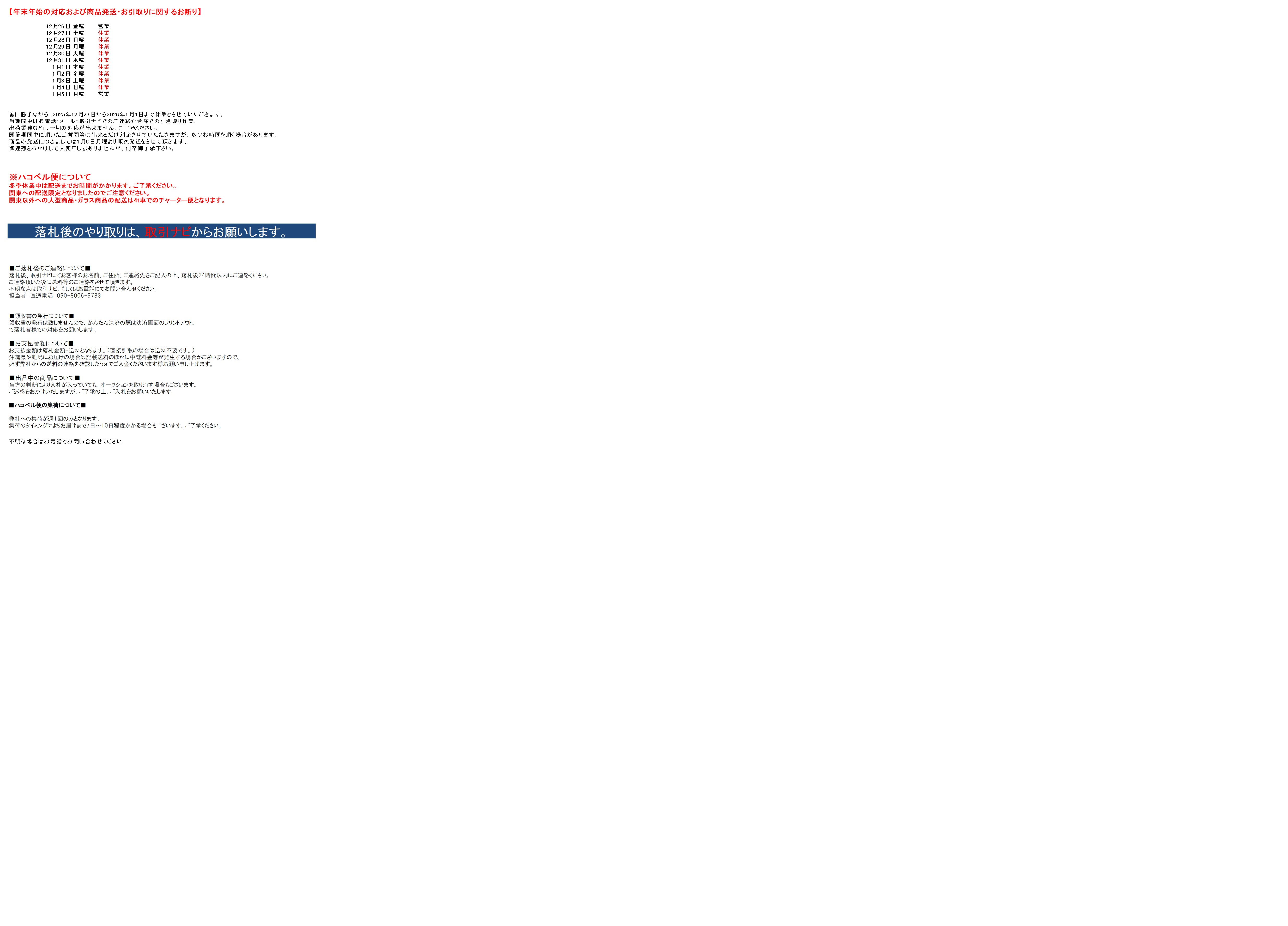 Ⅲ.一旦成功中标,您必须全额支付该拍品(成交价+消费税+银行转账费+日本邮费+代购费)。