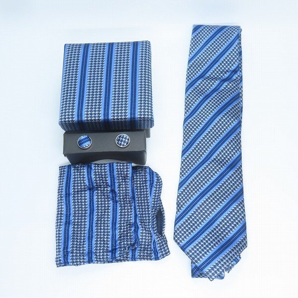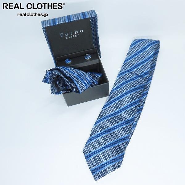 | Furbo design/フルボデザイン シルク ネクタイ/カフスボタン/ポケットチーフ ブルー系 3点セット /000 | |||||||||||||||||||||||||