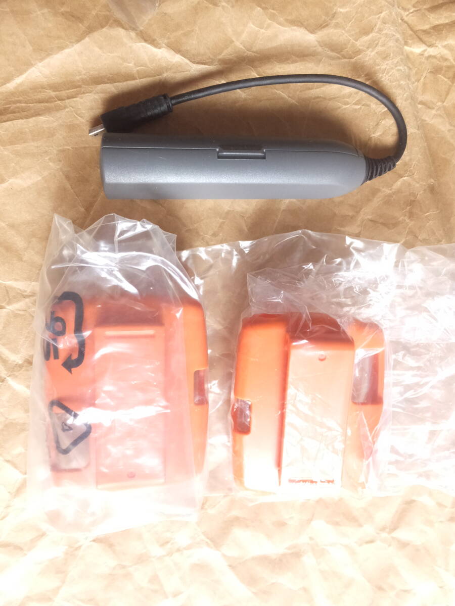 本体、ケース2個、電池ケース、イヤフォン、アダプタ、CD-ROM、箱のみです。