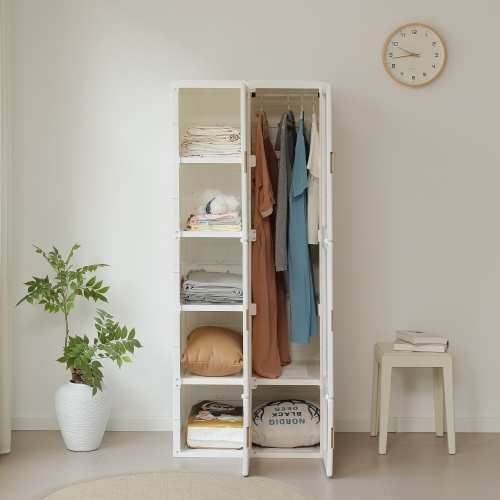 • ●モダンでシンプルどんなお部屋にも馴染みやすいデザインです。●高品質ポリプロピレン製で、長持ちする耐久性があります。汚れてもふき取りできお手入れ簡単。●隠しポール付でジャケットやコートも吊り下げOK。●上から1段目と2段目の棚板は取り外しが可能。収納したいものに合わせて自由自在にアレンジできます。●マグネット付きの扉は中身が見えないので、しっかり隠したいものの収納に便利。●モダンでシンプルどんなお部屋にも馴染みやすいデザインです。