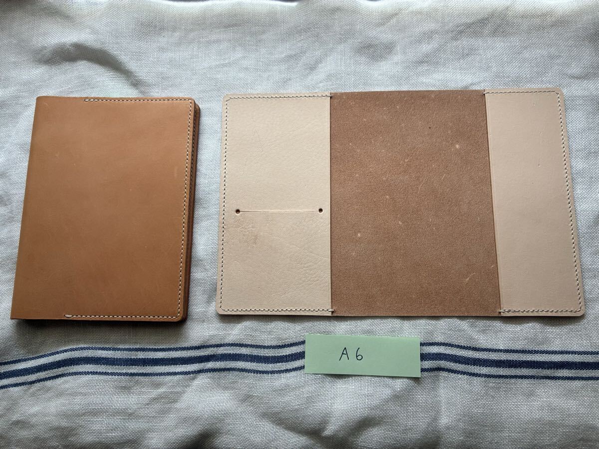 ・A6判の手帳、ノートに対応したヌメ革(牛革)のカバーです