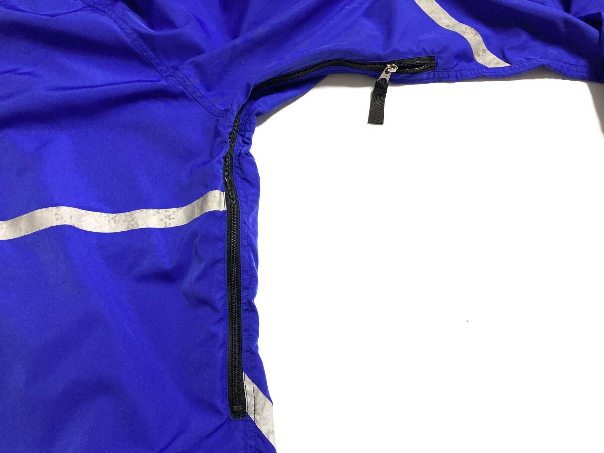 | コメント | おそらく90年代頃のものと思われます。カナダ製。全体的なデザインはシンプルな感じで、フロントはジッパー、ラグラン袖、ポケットは腰の辺りに付いたデザインになります。袖口はゴムとマジックテープ留め。スソにドローコード付き。ワキの下からサイド部分にかけてはジッパーが付いていてベンチレーションになっています。シルバーの部分はリフレクターになっています。おそらくコンパクトに畳むと腰のポケット部分の中に収まるのだと思われます。他にも色々なアウトドア系ブランドのアイテムや、その他いろいろなアイテムを出品しています。よろしければご覧ください。 |