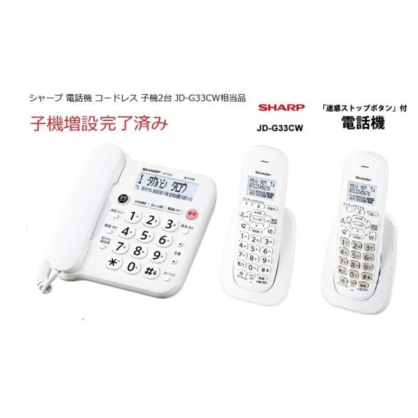 デジタルコードレス電話機 子機2台 ホワイト系 SHARP (シャープ) JD-G33CW相当品