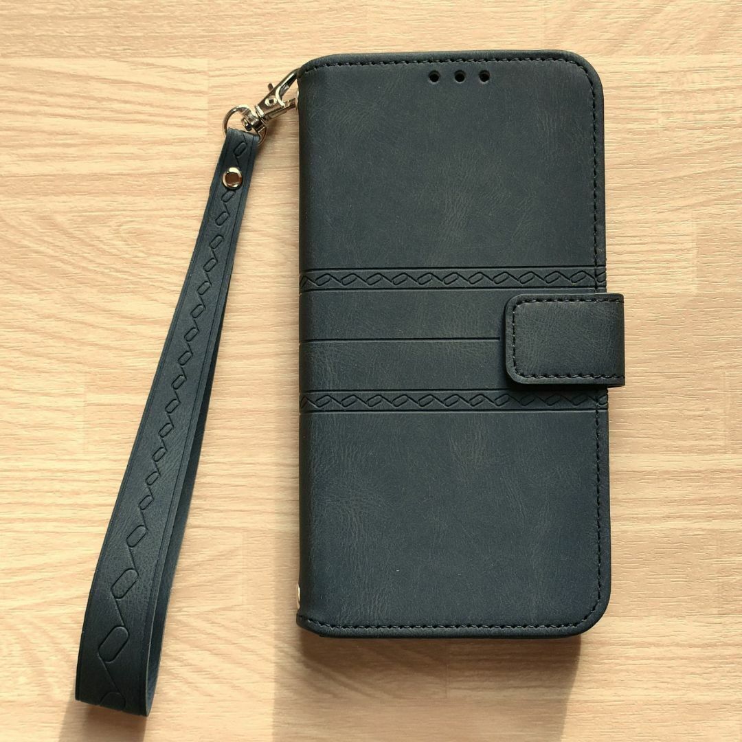 AQUOS sense4 / AQUOS sense5G 手帳型ケース ブラック ストラップホール カード収納可 管理131-19