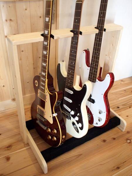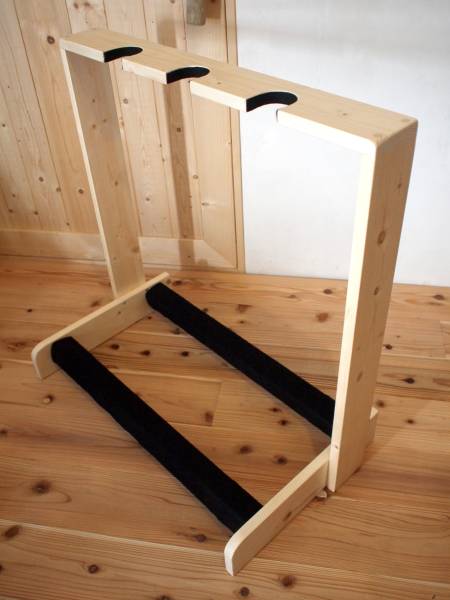 ギタースタンド☆3本掛け★熊本県産★高級檜材★無塗装★ゆったり収納★送料込み