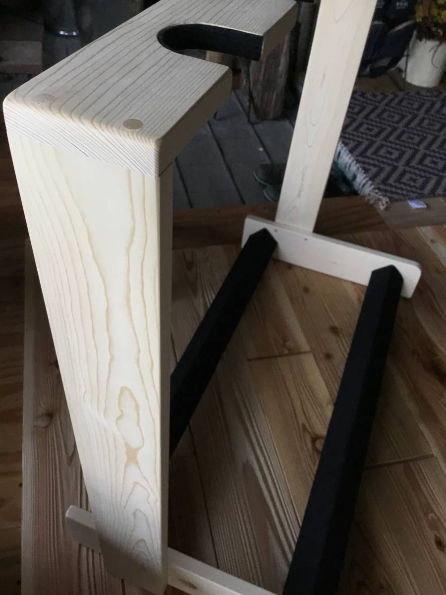 ギターを置いた時にフィットするように受けに角度をつけてあります。